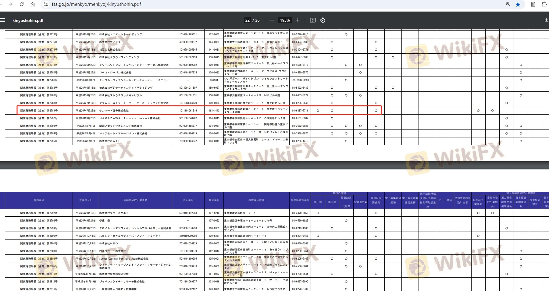 | สำนักงานบริการทางการเงิน (FSA) | 2789 | ญี่ปุ่น | อยู่ภายใต้การกำกับดูแล |