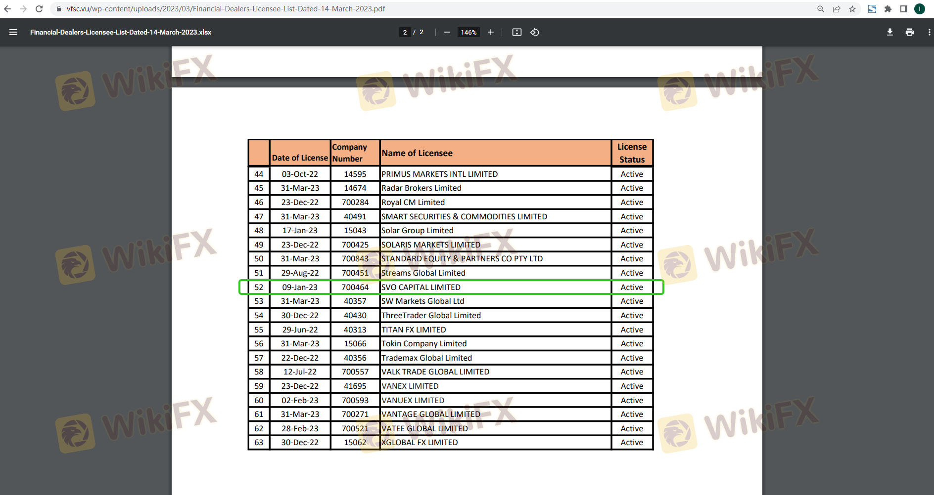 เกี่ยวกับความถูกต้องตามกฎหมายของโบรกเกอร์ฟอเร็กซ์ SvoFX ทางบริษัทได้มีการจัดเตรียม วานูอาตู VFSC และ