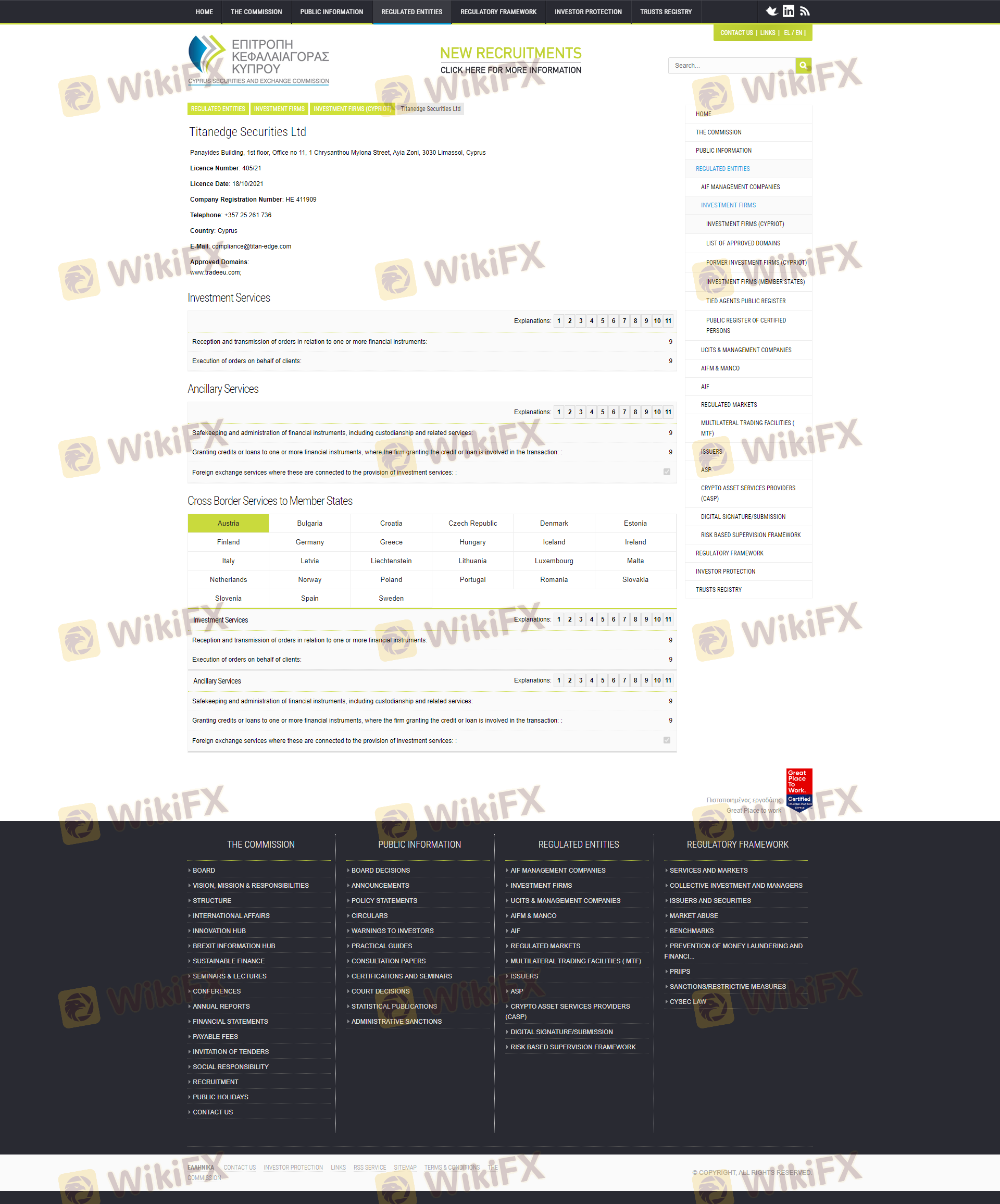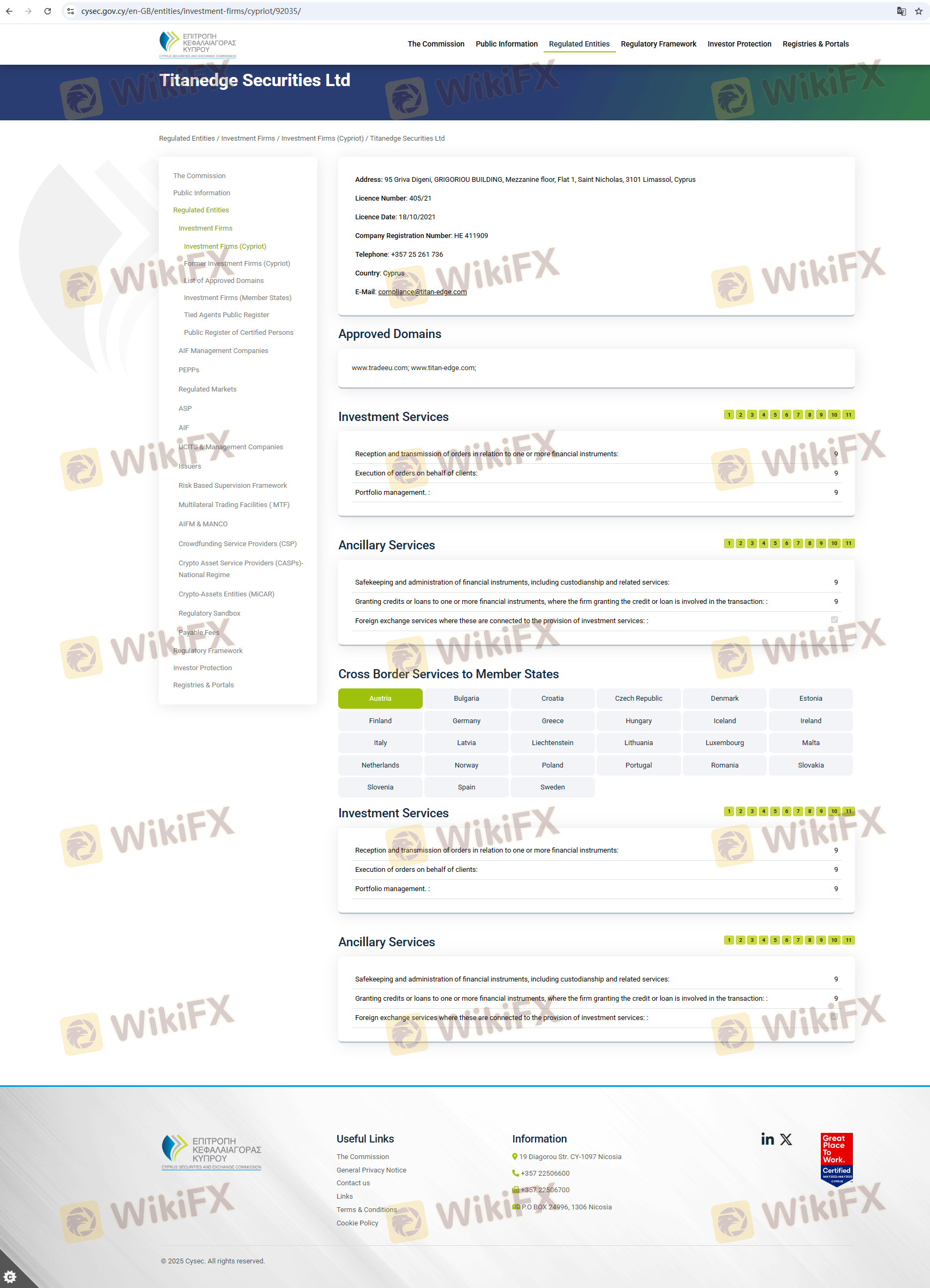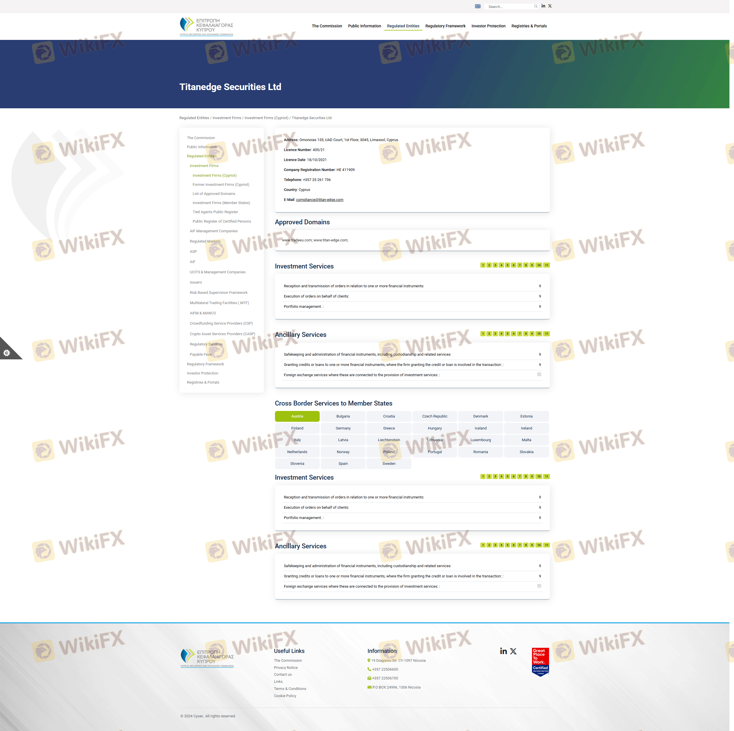 เกี่ยวกับความถูกต้องตามกฎหมายของโบรกเกอร์ฟอเร็กซ์ TitanEdge ทางบริษัทได้มีการจัดเตรียม ประเทศไซปรัส CYSEC และ