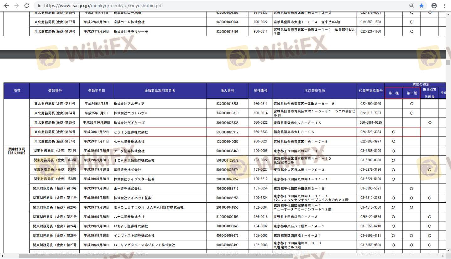 เกี่ยวกับความถูกต้องตามกฎหมายของโบรกเกอร์ฟอเร็กซ์ Toho Securities ทางบริษัทได้มีการจัดเตรียม ประเทศญี่ปุ่น FSA และ