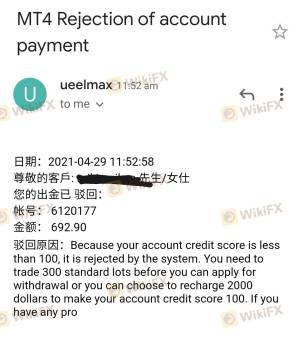 คะแนนการจัดอันดับอุตสาหกรรมล่าสุดของ UEE คือ 1.52 โดยคะแนนยิ่งสูง ความปลอดภัยยิ่งมาก (เต็ม 10 คะแนน) และยิ่งมีใบอนุญาตกำกับดูแลมาก ก็ยิ่งน่าเชื่อถือมากขึ้น 1.52 หากคะแนนต่ำเกินไป มีความเสี่ยงที่จะถูกหลอกลวง กรุณาเลือกโบรกเกอร์อย่างระมัดระวังเพื่อหลีกเลี่ยงความเสี่ยง