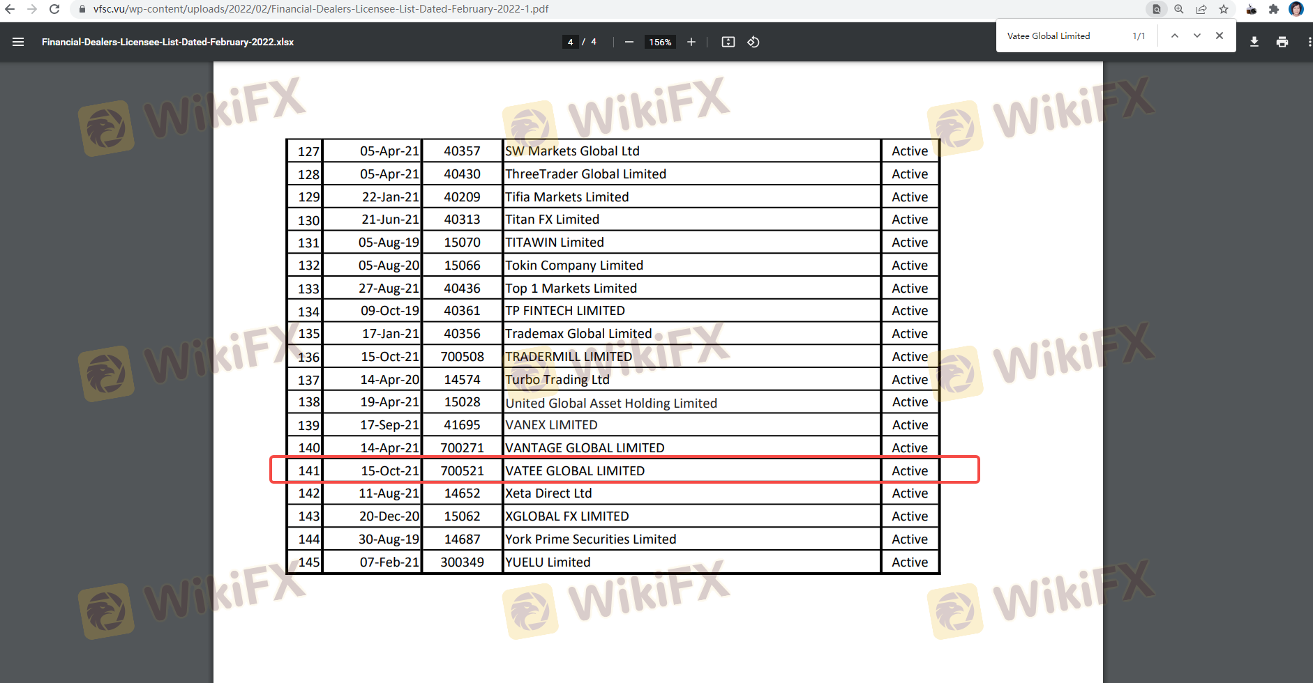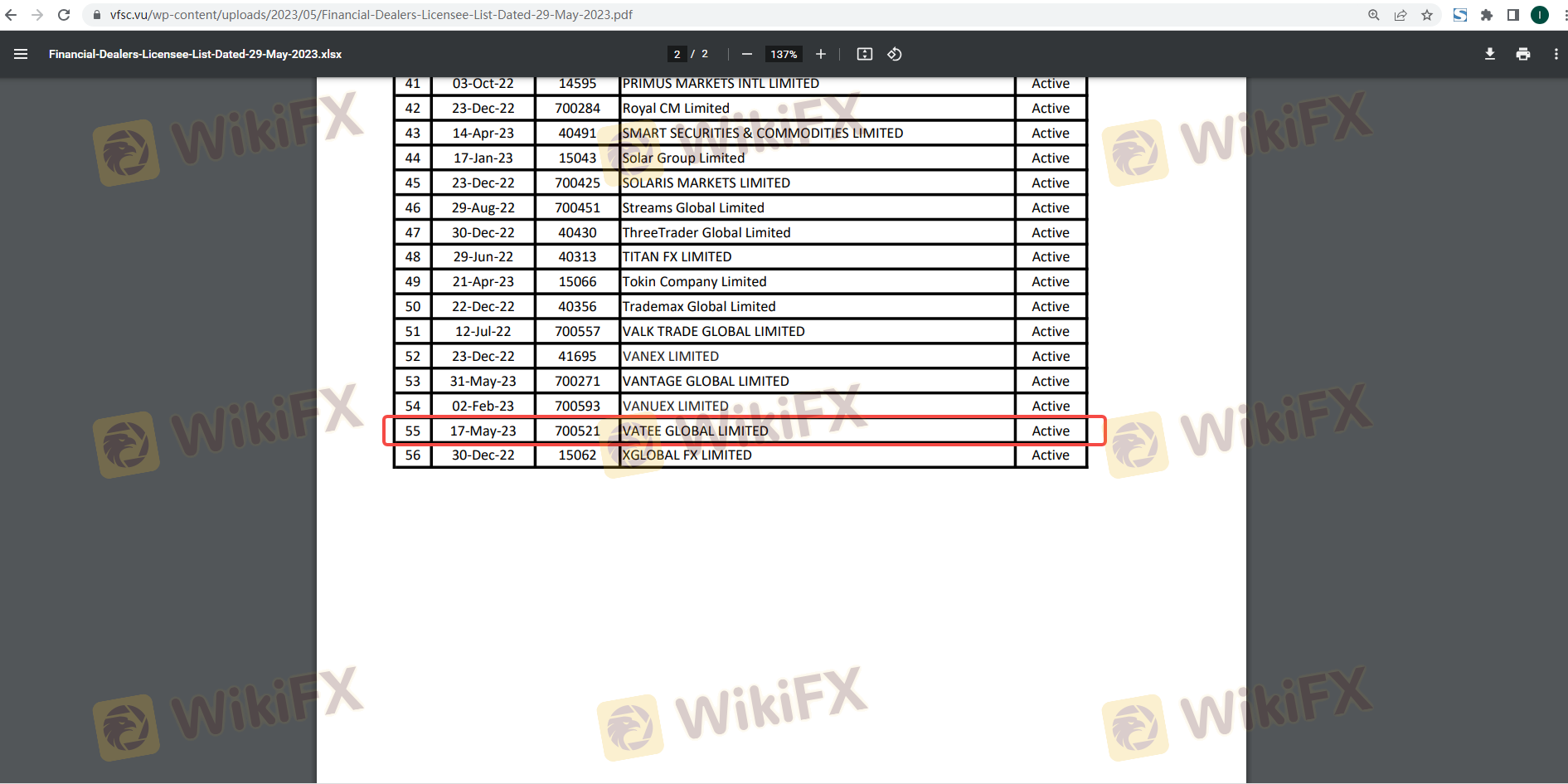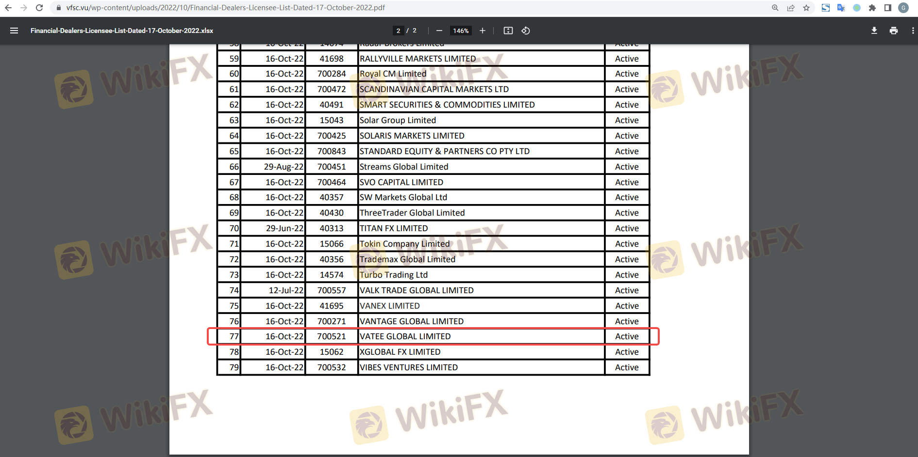 เกี่ยวกับความถูกต้องตามกฎหมายของโบรกเกอร์ฟอเร็กซ์ VATEE ทางบริษัทได้มีการจัดเตรียม วานูอาตู VFSC และ