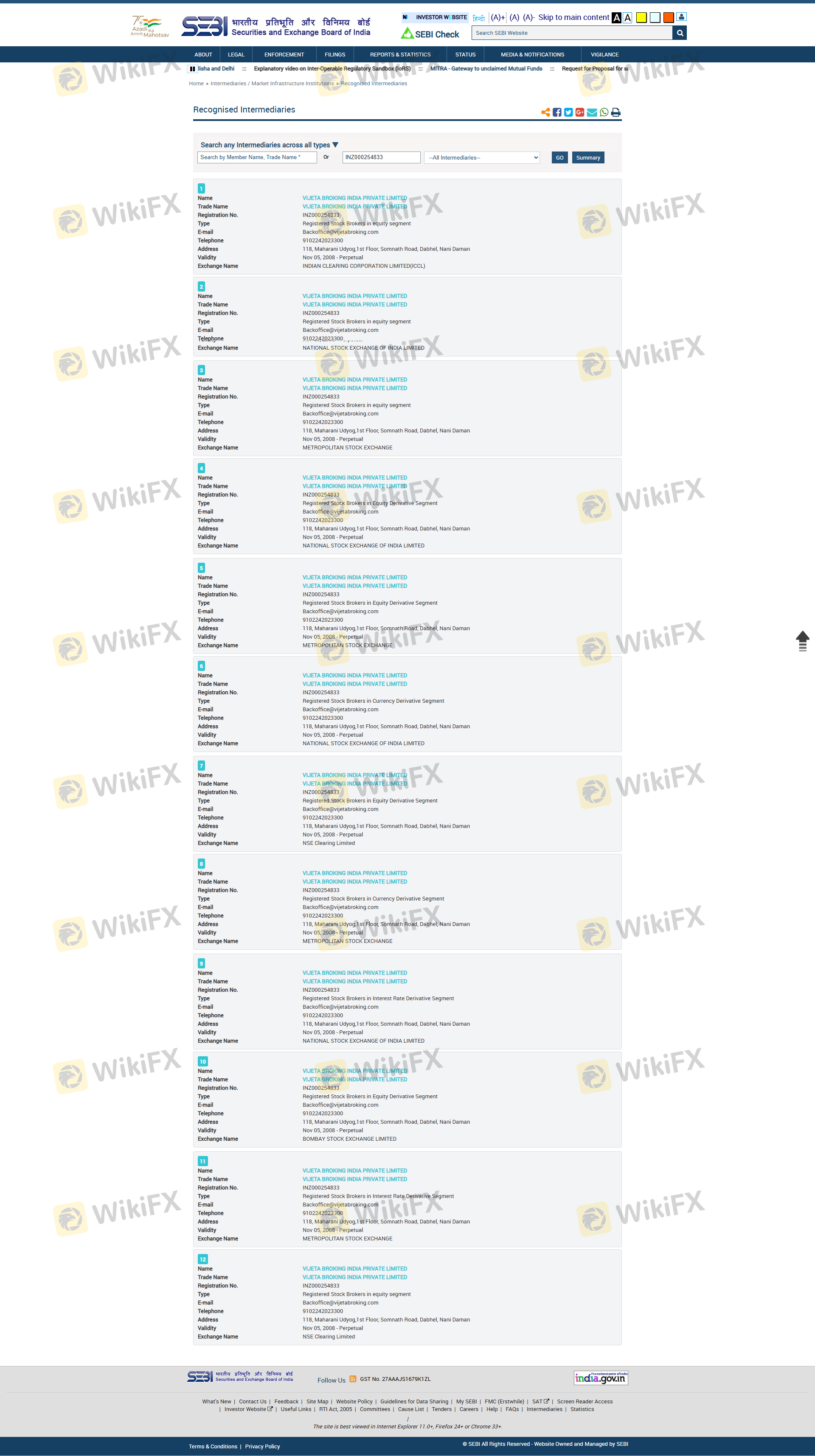 เกี่ยวกับความถูกต้องตามกฎหมายของโบรกเกอร์ฟอเร็กซ์ Vijeta Broking India Private Limited ทางบริษัทได้มีการจัดเตรียม อินเดีย SEBI และ