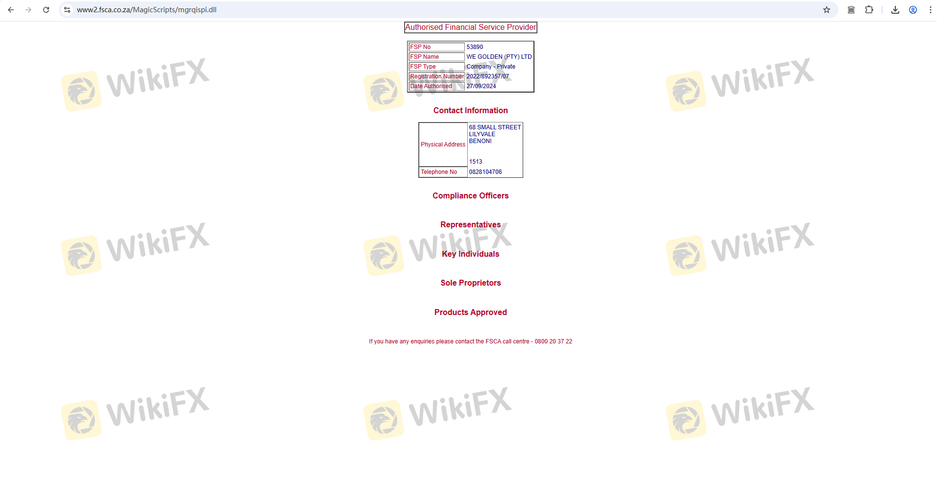 เกี่ยวกับความถูกต้องตามกฎหมายของโบรกเกอร์ฟอเร็กซ์ WeGolden ทางบริษัทได้มีการจัดเตรียม แอฟริกาใต้ FSCA และ