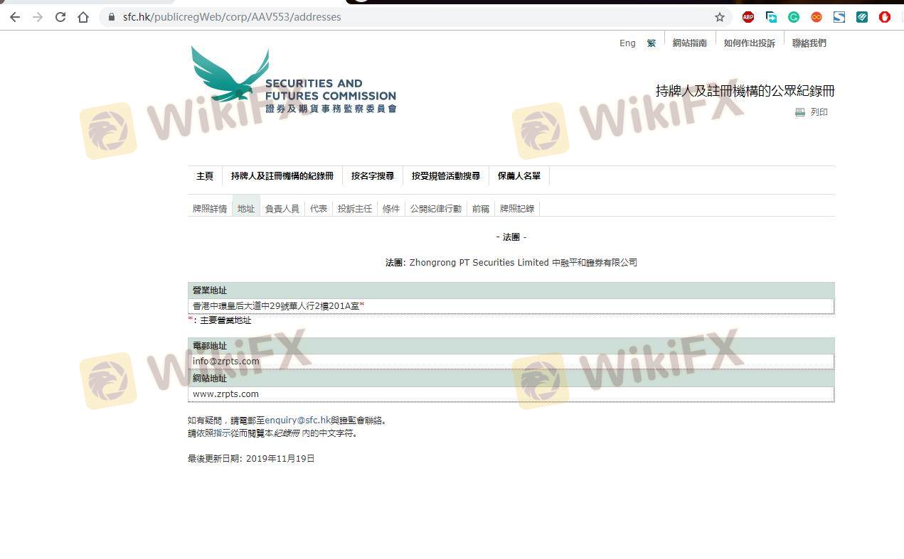 เกี่ยวกับความถูกต้องตามกฎหมายของโบรกเกอร์ฟอเร็กซ์ ZRPTS ทางบริษัทได้มีการจัดเตรียม ฮ่องกง SFC และ (ยังมีการสำรวจภาคสนามเกี่ยวกับความปลอดภัย)