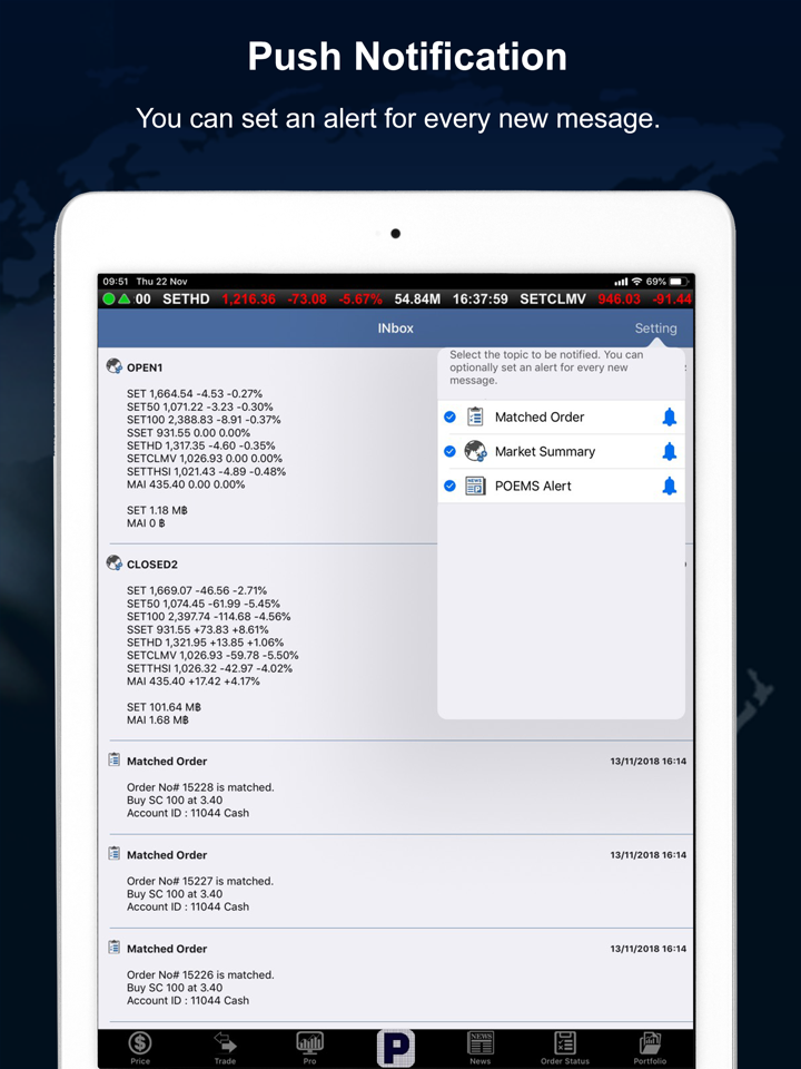 - Thông báo: Nhận cảnh báo cho biến động thị trường và hoạt động tài khoản.