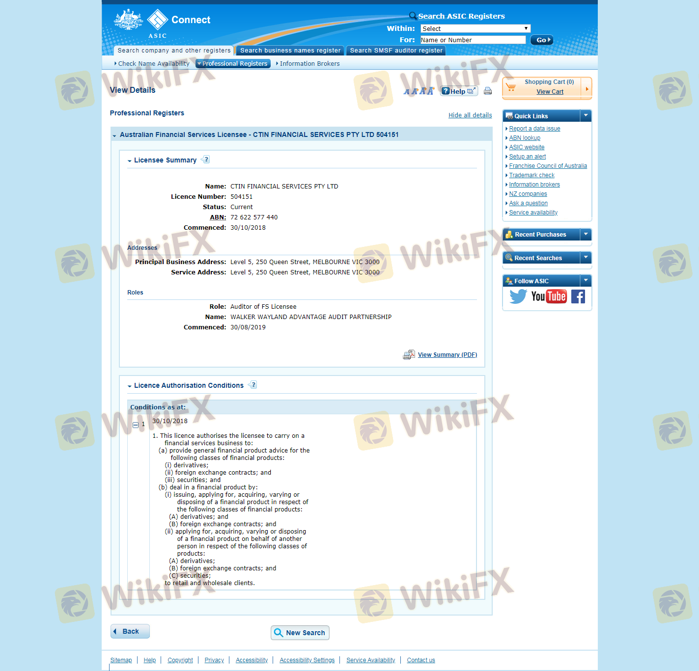 Vai trò của ASIC bao gồm thực thi luật để bảo vệ người tiêu dùng và nhà đầu tư, khiến nó trở thành một cơ quan có uy tín. Khuôn khổ quản lý do ASIC thiết lập yêu cầu các nhà môi giới phải duy trì tiền của khách hàng trong các tài khoản tách biệt, do đó đảm bảo rằng tiền của nhà giao dịch được bảo vệ ngay cả trong trường hợp nhà môi giới mất khả năng thanh toán. Đáng chú ý, CTIN chưa phải đối mặt với bất kỳ vấn đề quản lý đáng kể nào hoặc tiết lộ tiêu cực kể từ khi thành lập, đây là một chỉ số tích cực về sự tuân thủ và tính toàn vẹn hoạt động của nó.