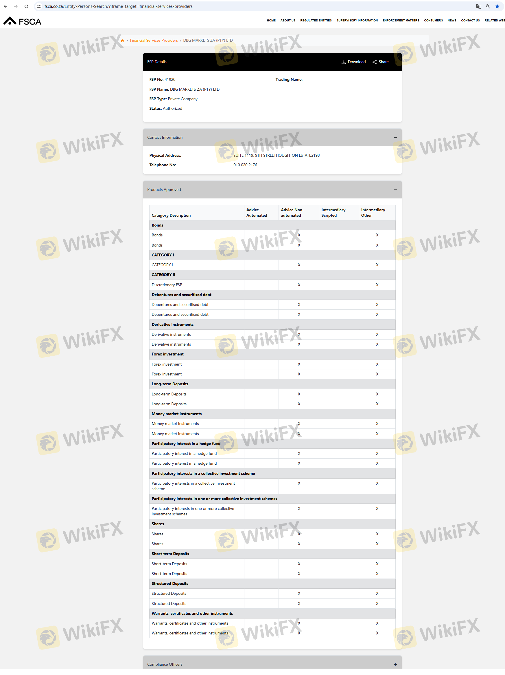| FSCA | 41920 | Nam Phi | Đã Xác Minh |