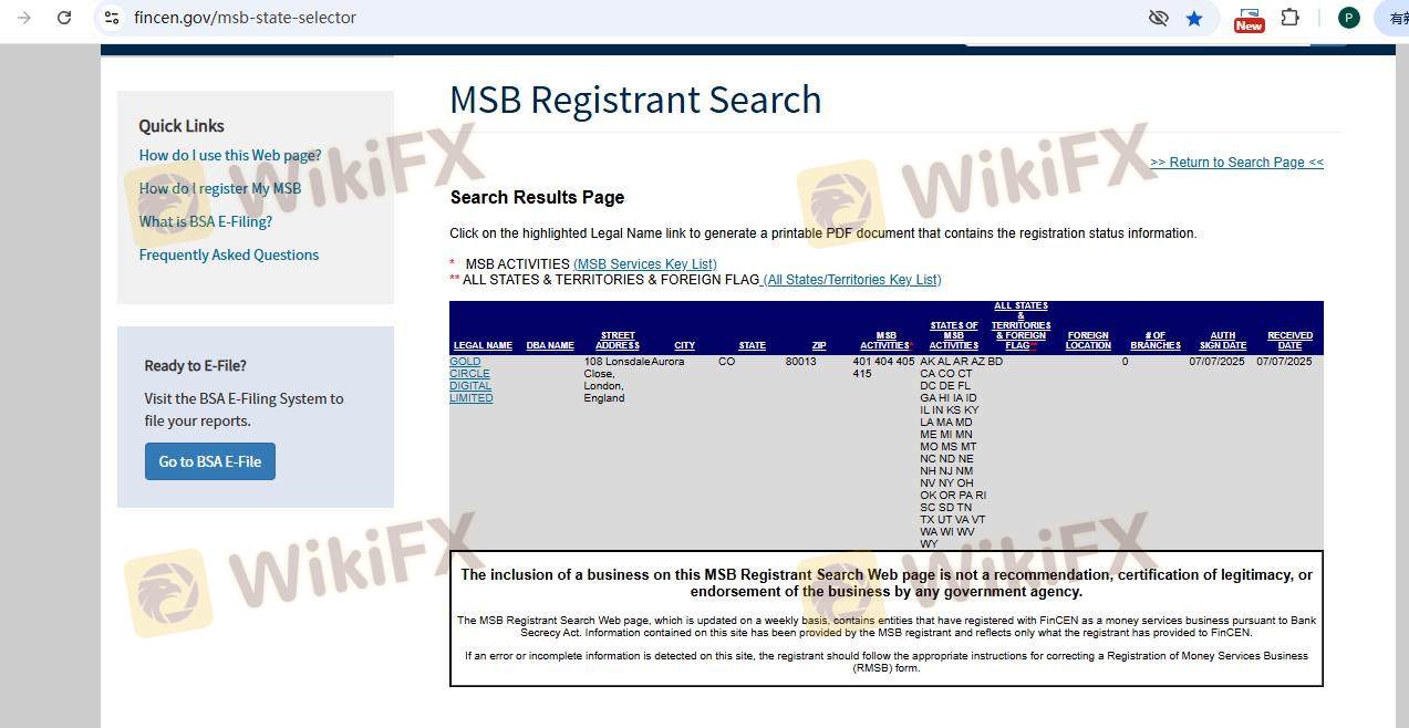 Dựa vào tính hợp pháp của sàn môi giới GOLDCIRCLE cung cấp Hoa Kỳ FinCEN và .