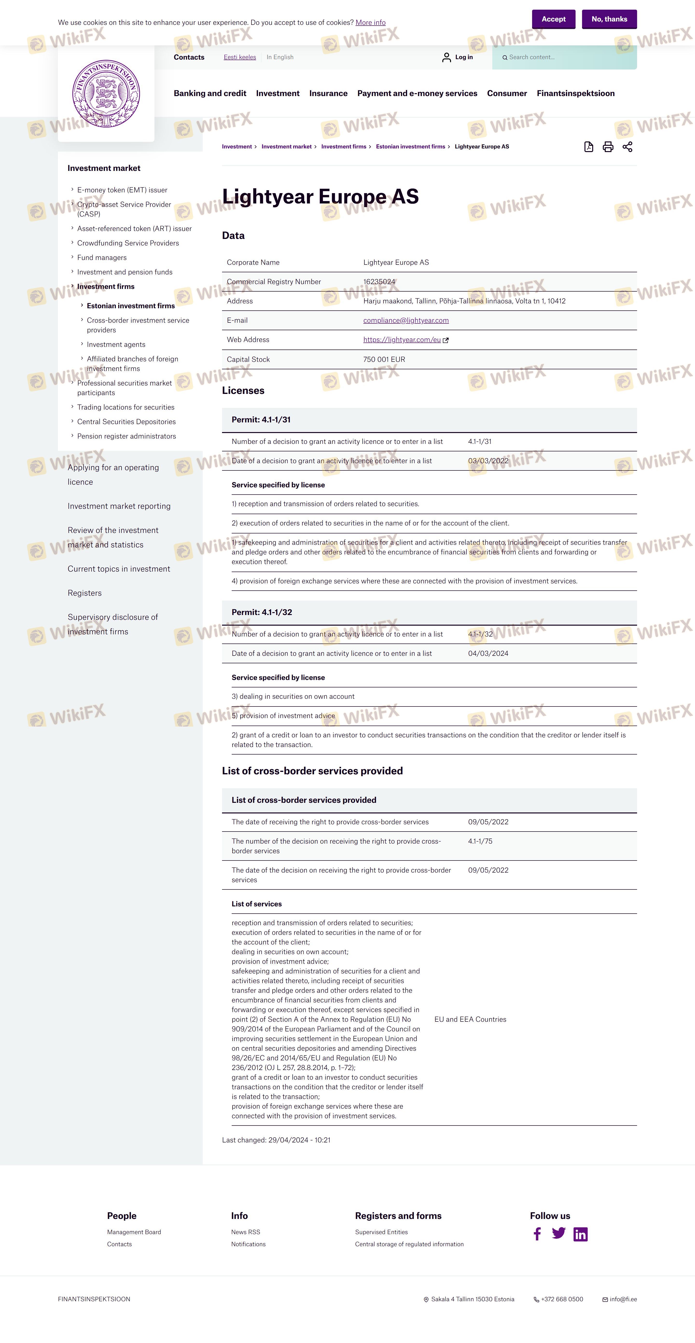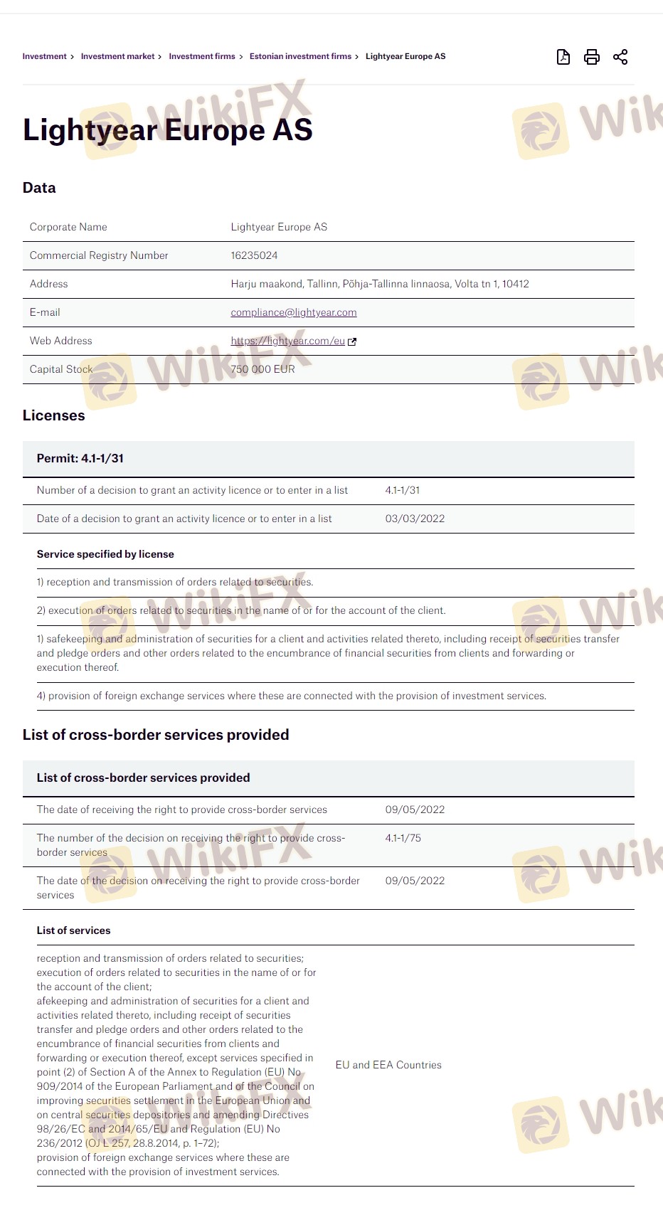 Dựa vào tính hợp pháp của sàn môi giới Lightyear cung cấp Estonia FSA và (bạn có thể xem biểu đồ đánh giá về độ an toàn của nền tảng).