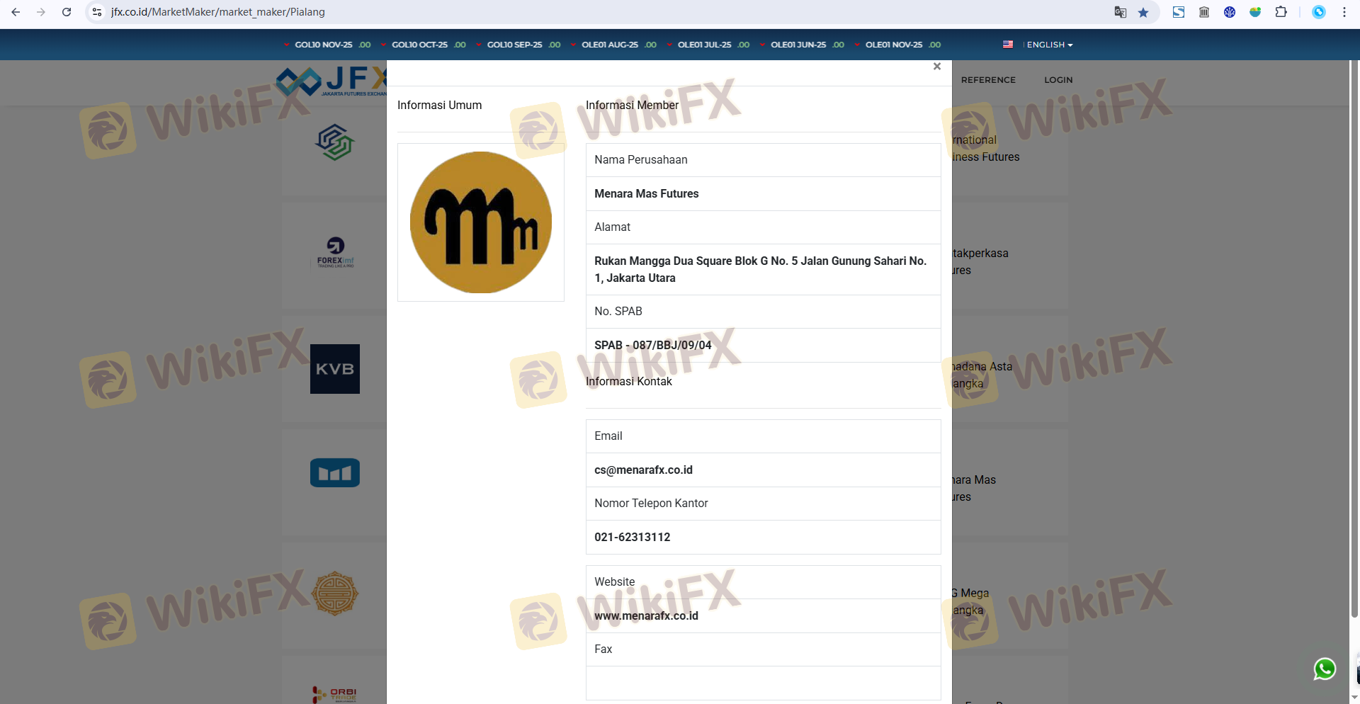 Menara Mas Futures được thành lập để đáp ứng nhu cầu ngày càng tăng về giao dịch Forex tại Indonesia. Công ty tuyên bố có lịch sử hoạt động vững chắc, tuy nhiên thông tin công khai về cơ cấu sở hữu và đội ngũ quản lý của họ rất hạn chế. Việc thiếu minh bạch trong những lĩnh vực này thường có thể là một dấu hiệu cảnh báo cho các nhà đầu tư tiềm năng.