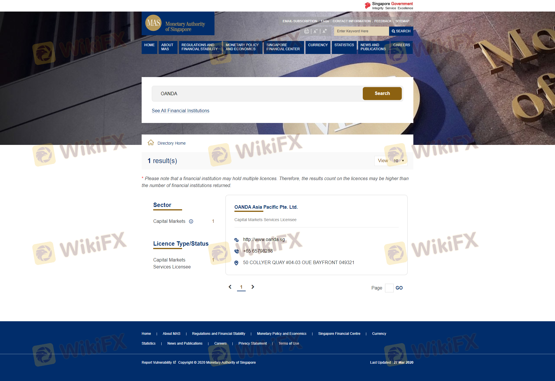 OANDA hoạt động dưới sự giám sát của nhiều cơ quan quản lý, đây là yếu tố quan trọng để xác định độ tin cậy của họ với tư cách là một nhà môi giới forex. Việc được quản lý đảm bảo rằng các nhà môi giới tuân thủ các tiêu chuẩn hoạt động nghiêm ngặt, cung cấp một mức độ bảo vệ cho các nhà giao dịch. OANDA được quản lý bởi một số khu vực pháp lý cấp 1, bao gồm CFTC và NFA tại Hoa Kỳ, FCA tại Vương quốc Anh và ASIC tại Úc. Các cơ quan quản lý này thực thi các biện pháp tuân thủ nghiêm ngặt, đảm bảo rằng các nhà môi giới duy trì tính minh bạch và công bằng trong các giao dịch của họ.
