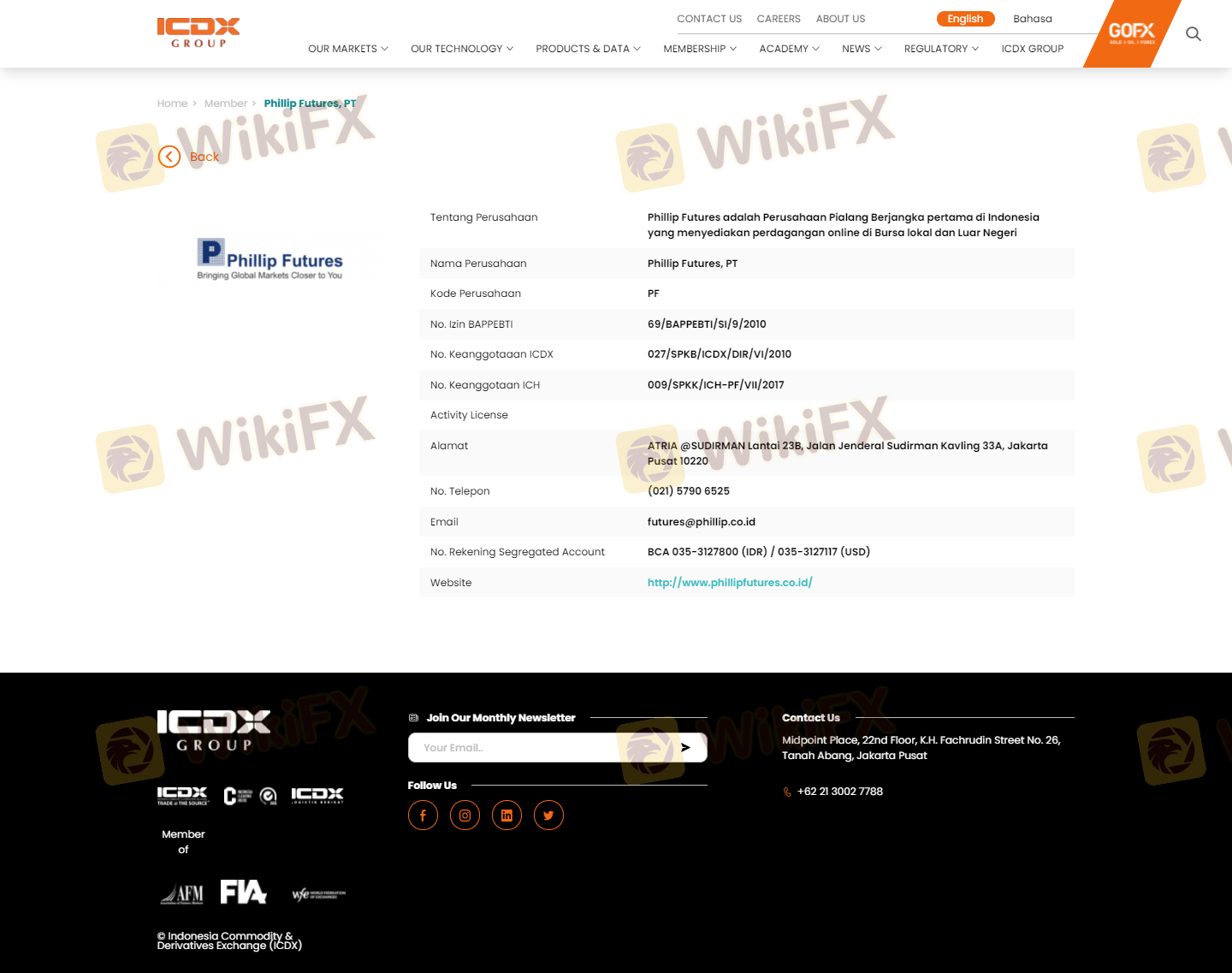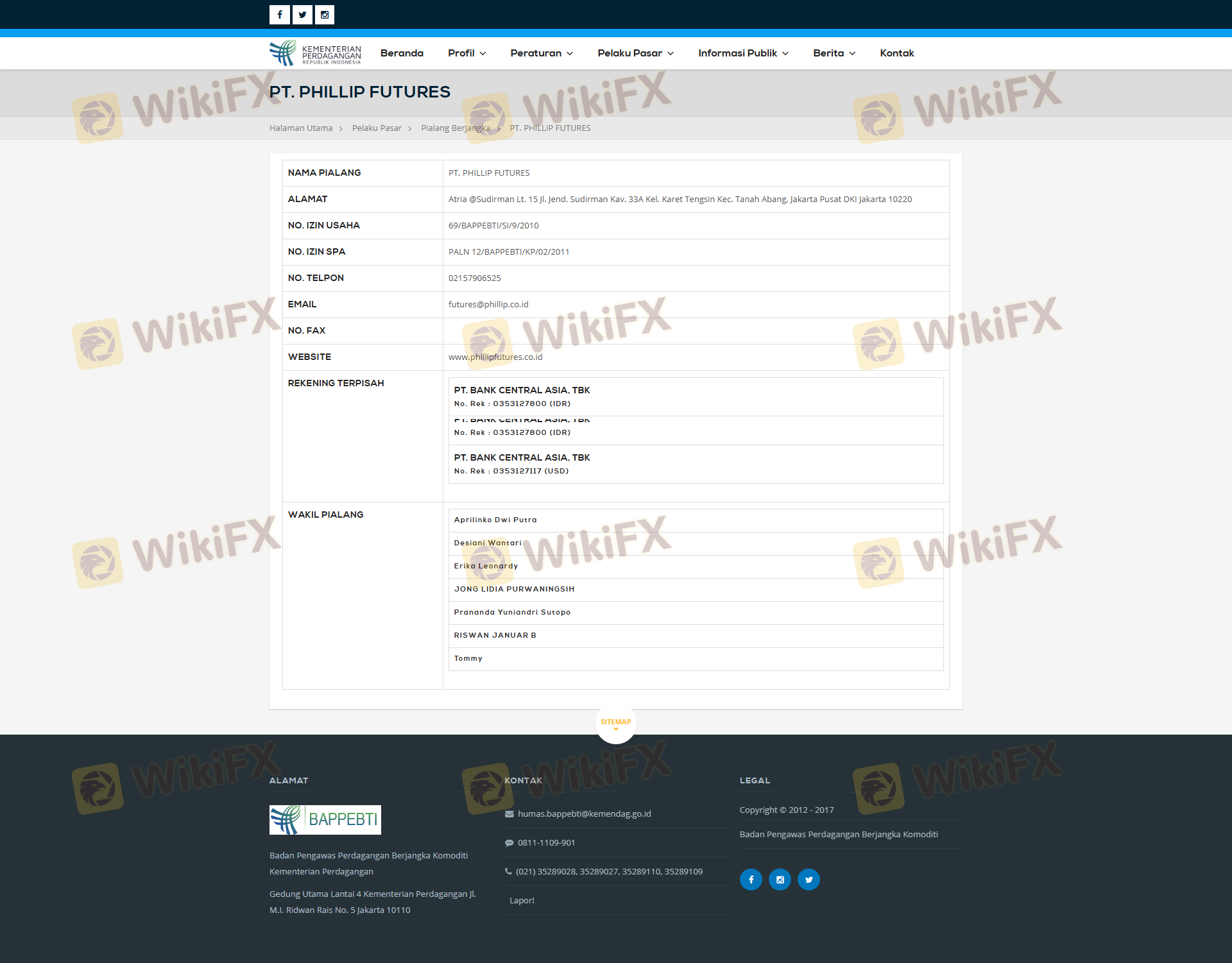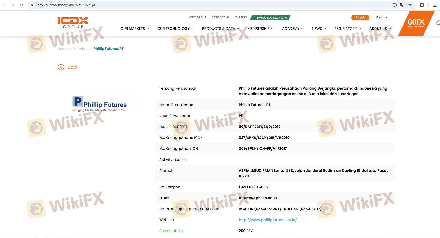Dựa vào tính hợp pháp của sàn môi giới Phillip Futures cung cấp Indonesia ICDX, Indonesia BAPPEBTI, Indonesia JFX và (bạn có thể xem biểu đồ đánh giá về độ an toàn của nền tảng).