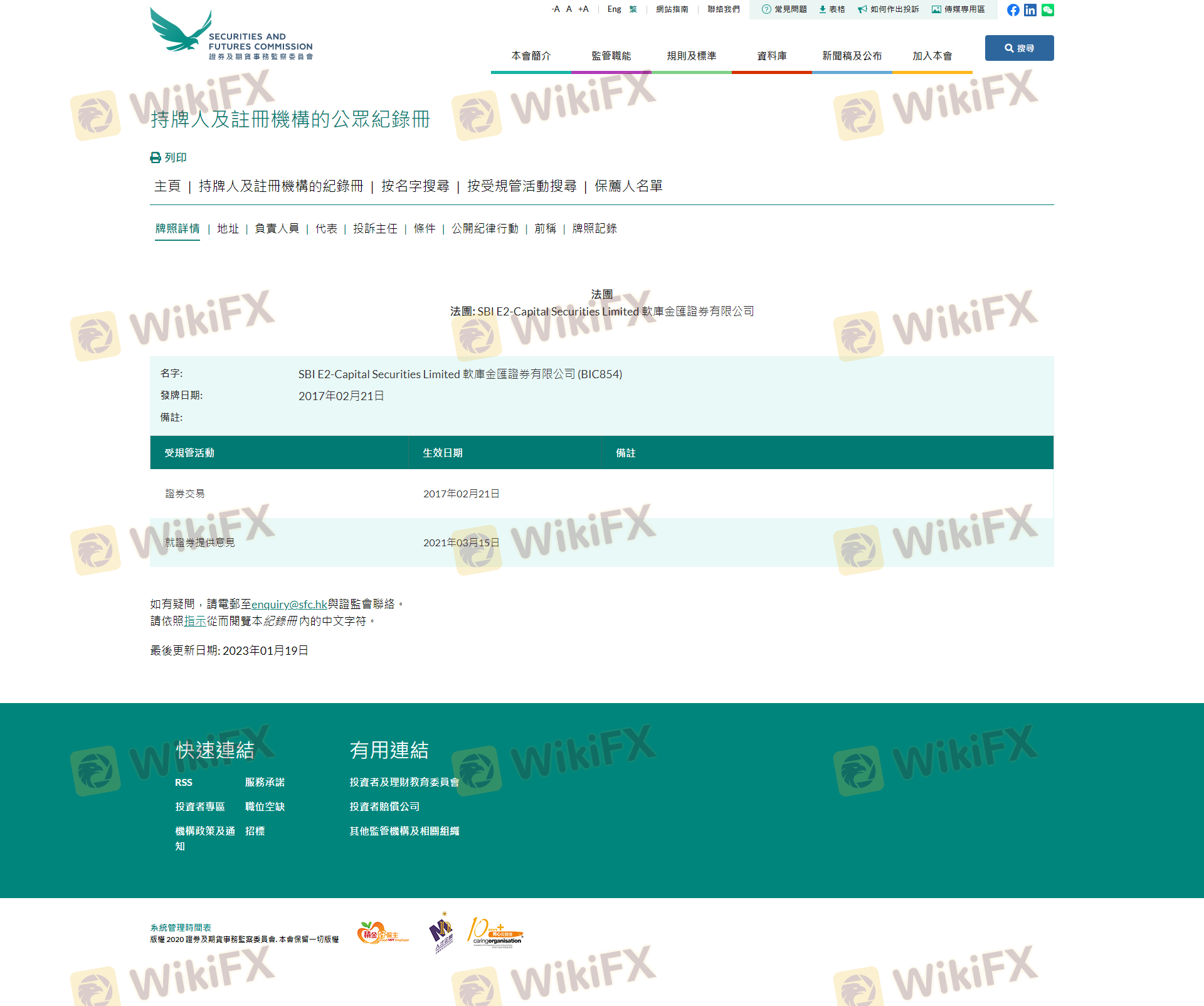 Dựa vào tính hợp pháp của sàn môi giới SBI E2-Capital cung cấp Hong Kong SFC và (bạn có thể xem biểu đồ đánh giá về độ an toàn của nền tảng).