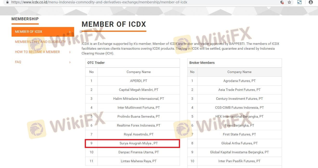Dựa vào tính hợp pháp của sàn môi giới Surya cung cấp Indonesia ICDX và (bạn có thể xem biểu đồ đánh giá về độ an toàn của nền tảng).