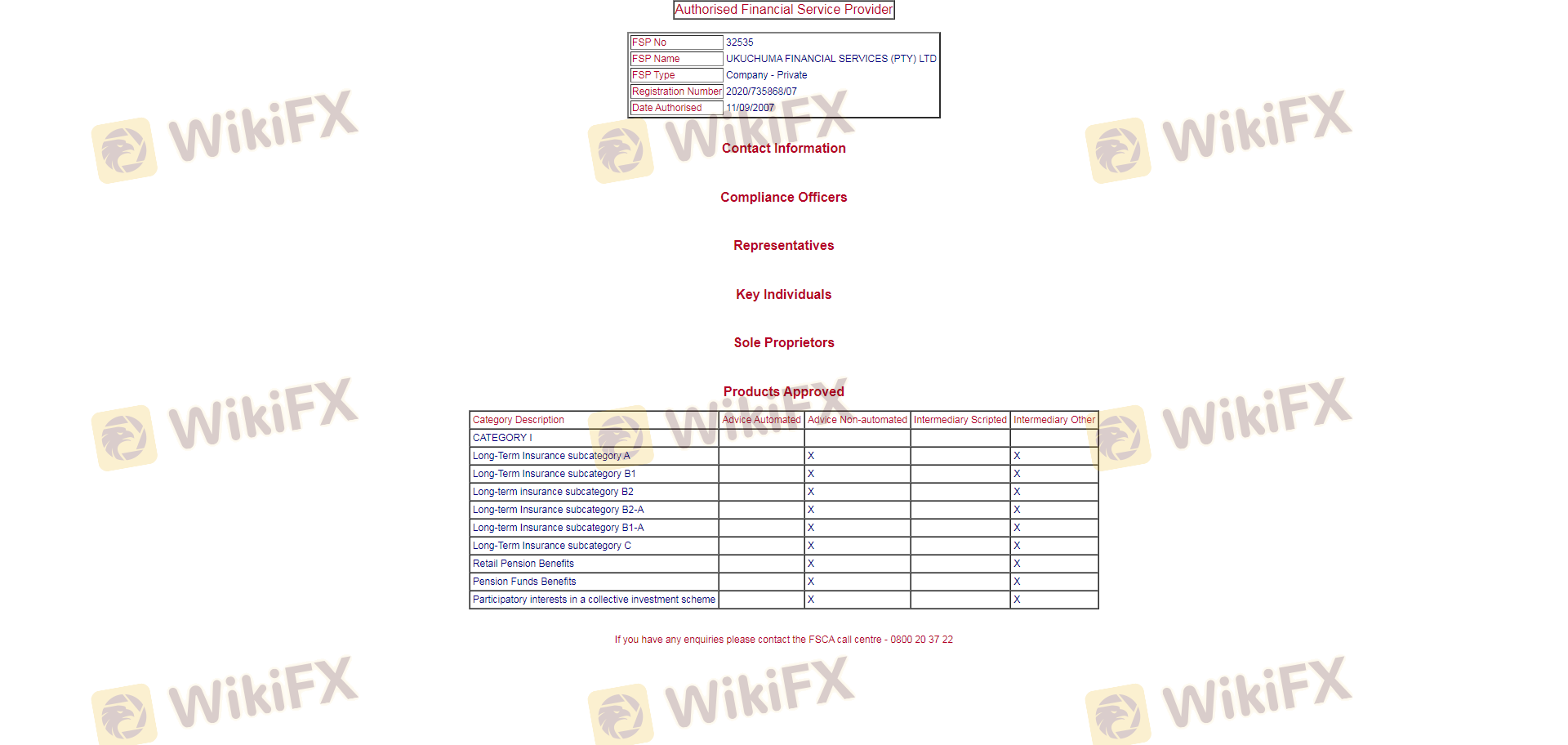 FSCA được công nhận là cơ quan quản lý cấp 2, có nghĩa là nó có các yêu cầu ít nghiêm ngặt hơn so với các cơ quan quản lý cấp 1 như FCA ở Vương quốc Anh hoặc ASIC ở Úc. Mặc dù FSCA có giám sát các nhà môi giới forex, nhưng nó thiếu một chương trình bồi thường để bảo vệ nhà đầu tư trong trường hợp nhà môi giới mất khả năng thanh toán. Việc thiếu mạng lưới an toàn này làm dấy lên lo ngại về sự bảo vệ tổng thể có sẵn cho khách hàng giao dịch với Ukuchuma.