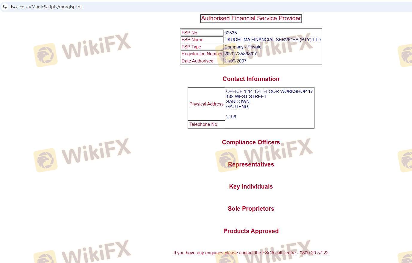 Dựa vào tính hợp pháp của sàn môi giới Ukuchuma cung cấp Nam Phi FSCA và (bạn có thể xem biểu đồ đánh giá về độ an toàn của nền tảng).