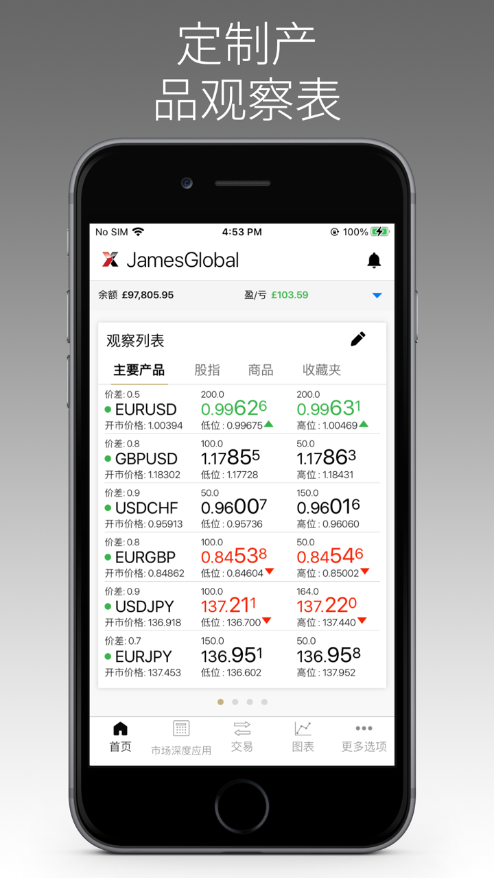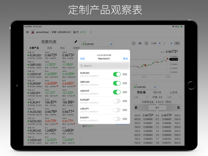 - 可自訂觀察清單: 使用您個人化的資產清單監控關鍵市場。