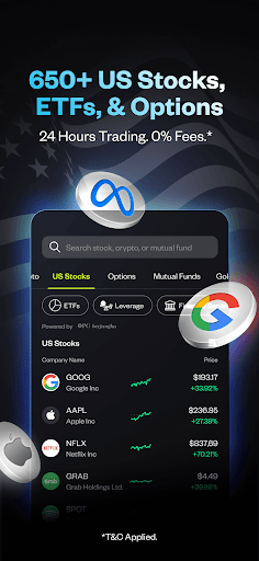 - 一站式投資平台: 存取超過 1,000 種投資產品,包括加密貨幣、美國股票、ETFs、黃金和共同基金。