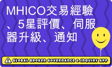 伺服器升級中斷交易:客戶溝通失誤總體而言,與MHICO進行交易是一個不錯的經驗。我沒有給予5星的唯一原因是因為他們在升級伺服器時,沒有通知客戶而導致連接中斷。下次請先與客戶溝通,再進行可能導致客戶斷開MT4平台的操作。