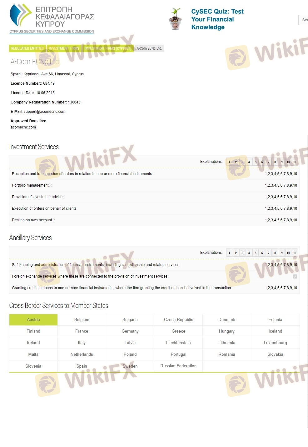 關於 A-Com ECNc 外匯交易商的合法性,它賽普勒斯 CYSEC,在。