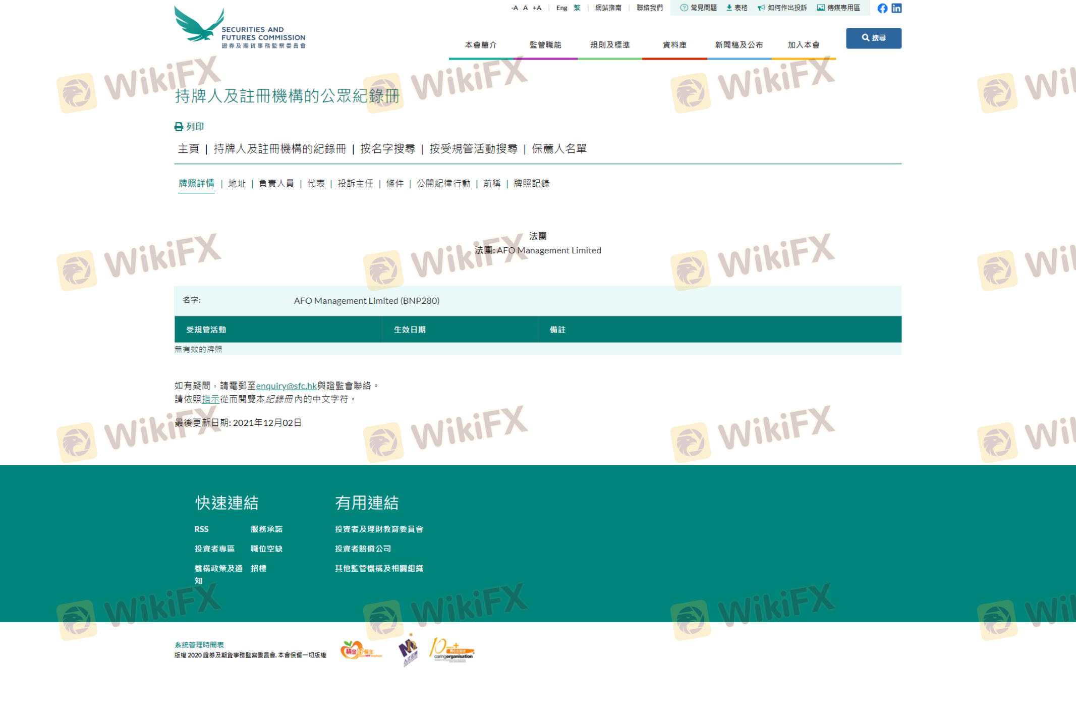 關於 AFO 外匯交易商的合法性,它香港 SFC,在(也有關於安全的實勘調查)。