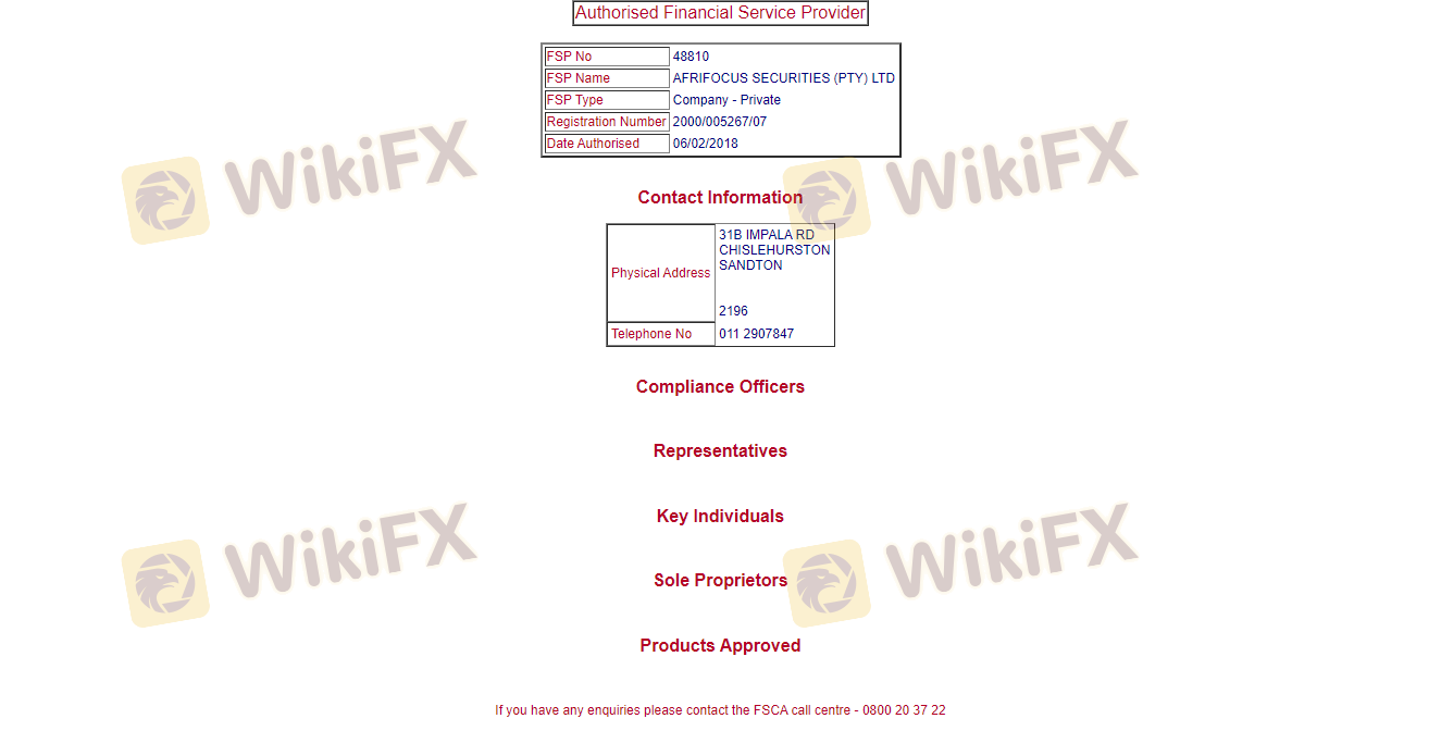 關於 Afrifocus 外匯交易商的合法性,它南非 FSCA,在。