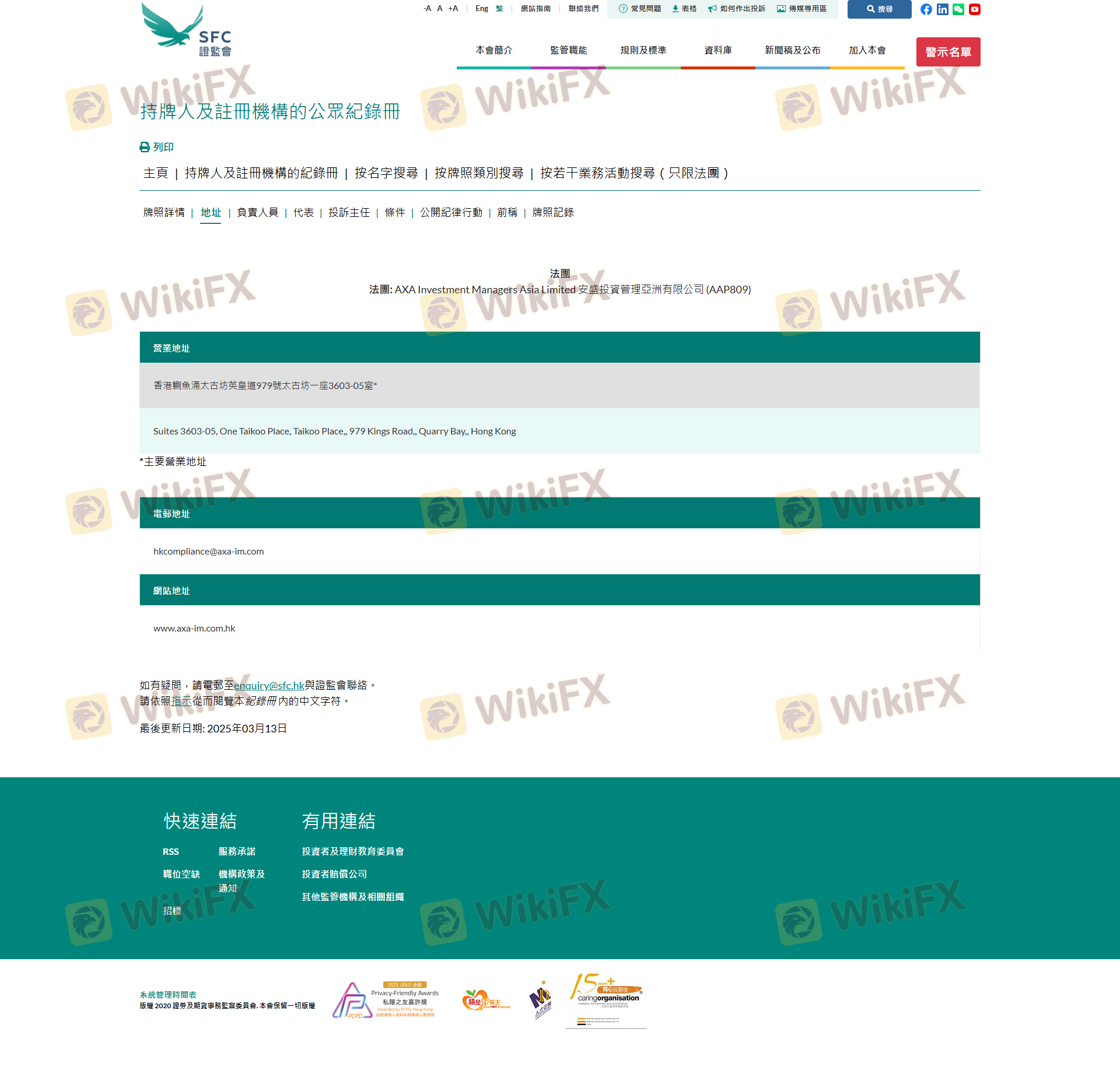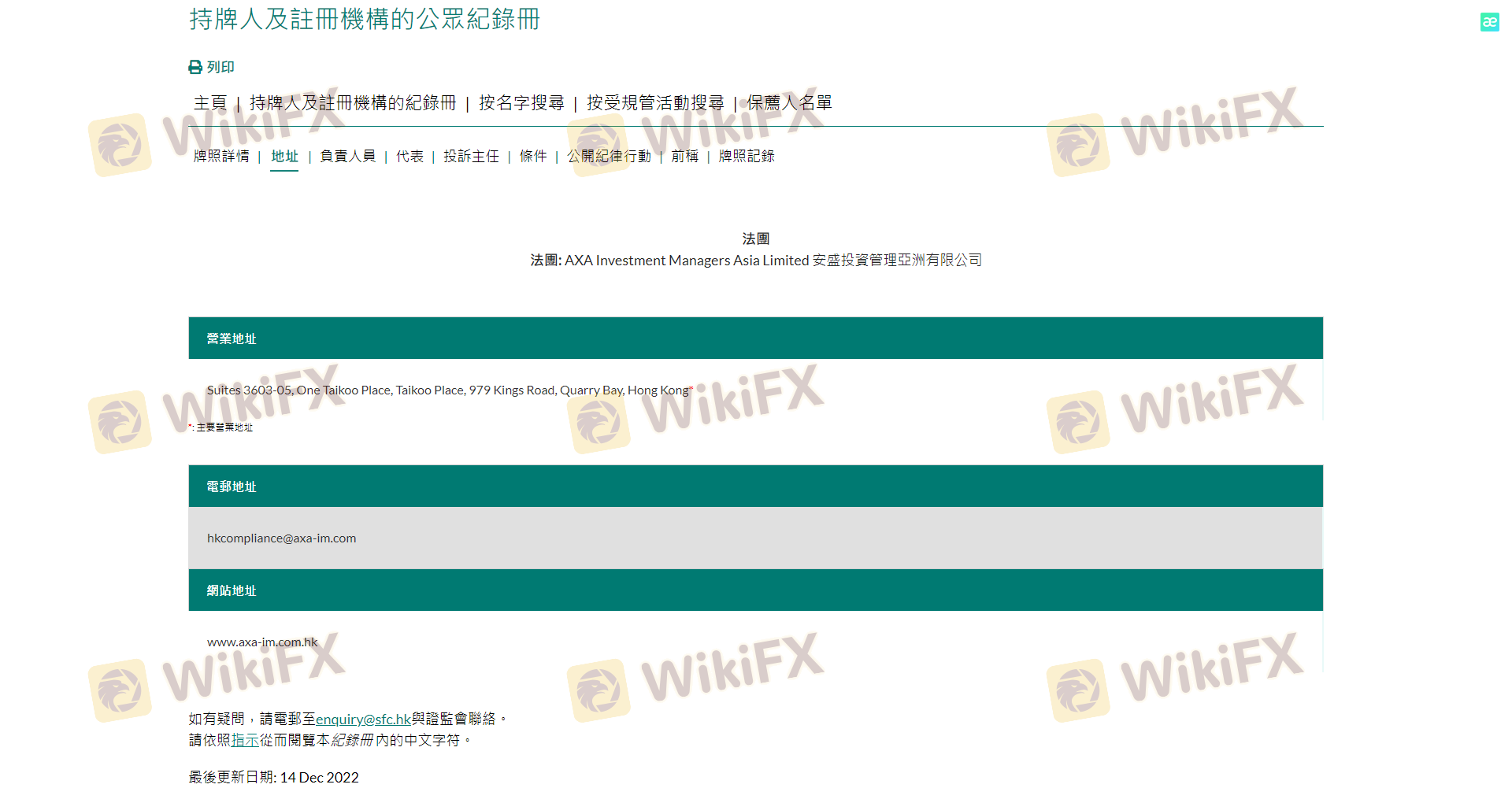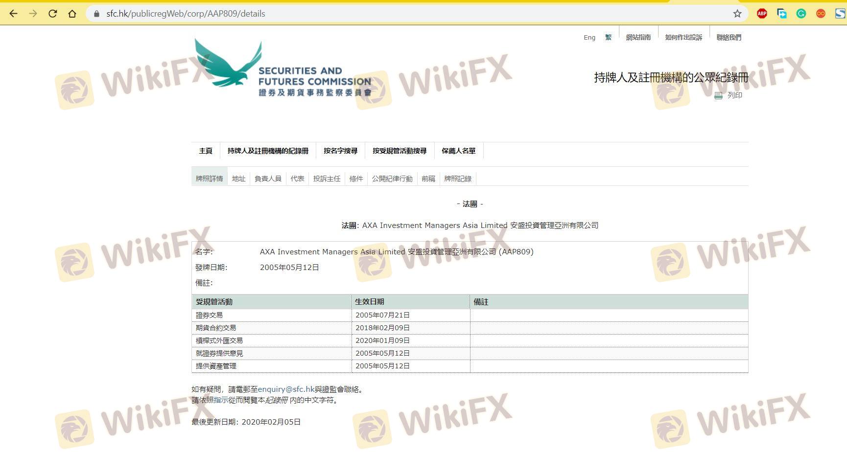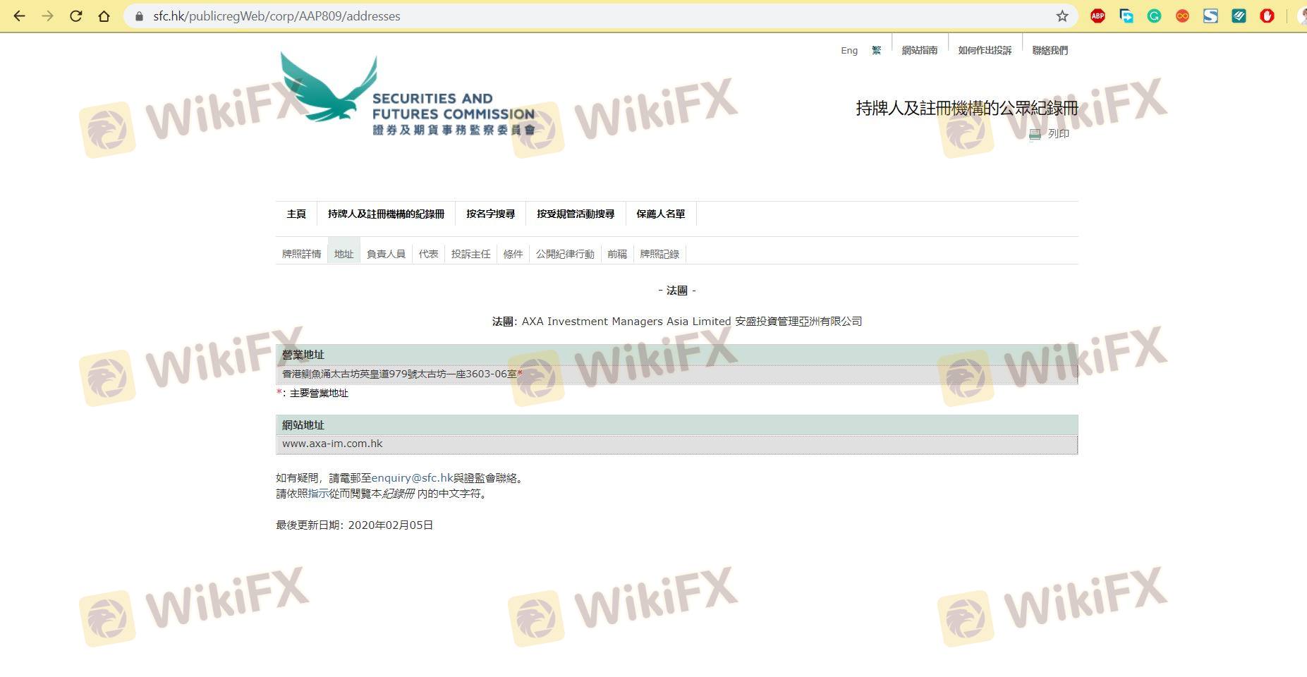 關於 AXA 外匯交易商的合法性,它香港 SFC,在(也有關於安全的實勘調查)。
