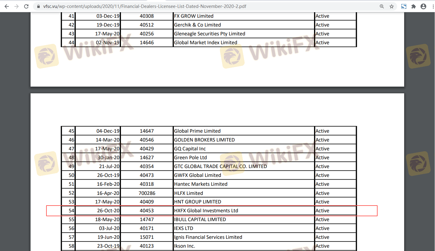 關於 Banke Ex 外匯交易商的合法性,它瓦努阿圖 VFSC,在。