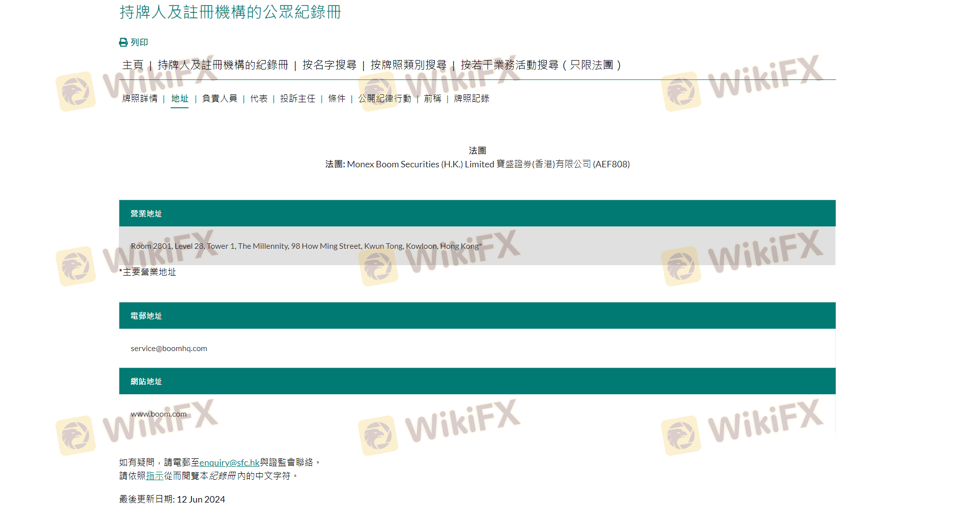 經紀商所處的監管環境對於評估其可信度至關重要。BOOM 受香港證券及期貨事務監察委員會(證監會)監管,該機構以對金融機構實施嚴格監管而聞名。此監管框架極為重要,因為它提供了一定程度的保證,確保經紀商遵循既定準則和慣例,以保護其客戶的利益。