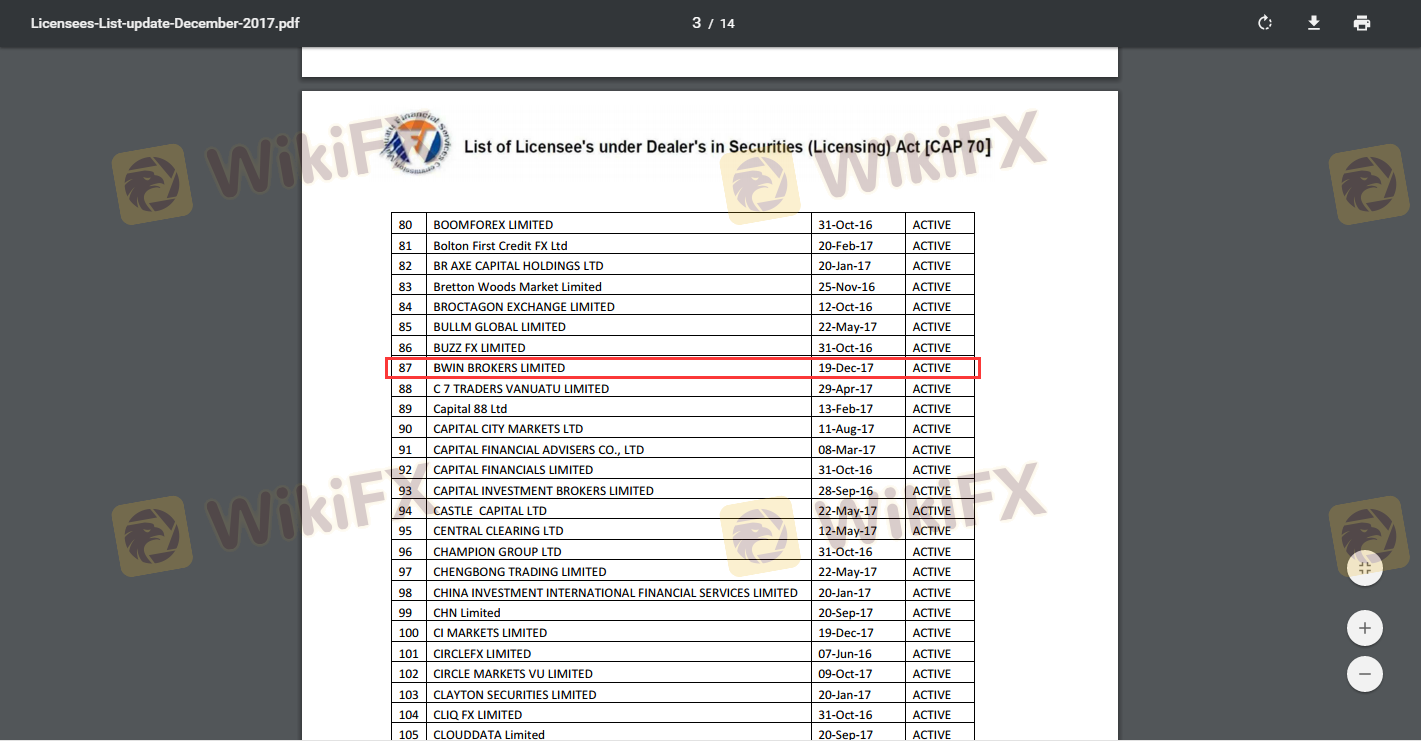 關於 Bwin 外匯交易商的合法性,它瓦努阿圖 VFSC,在。