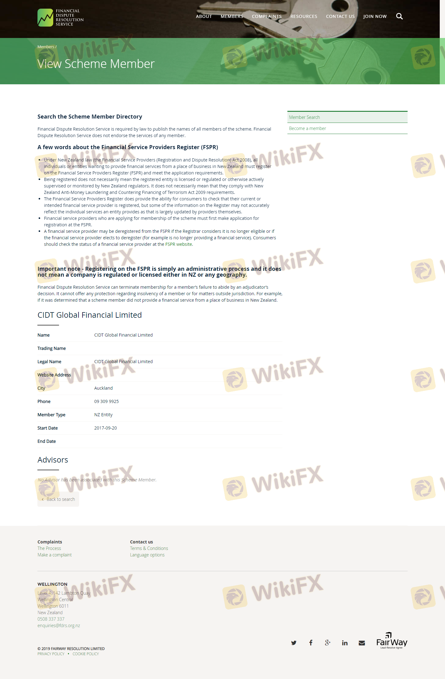 關於 CIDT GLOBAL 外匯交易商的合法性,它新西蘭 FSPR,在。