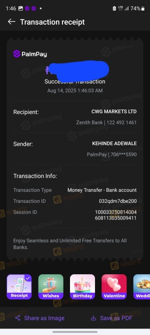 總之,雖然CWG Markets受英國金融行為監管局監管,提供了一定程度的合法性,但該經紀商面臨的各種投訴和擔憂值得警惕。用戶的評價褒貶不一,加上提款問題和執行問題的報告,表明潛在交易者應謹慎對待這家經紀商。