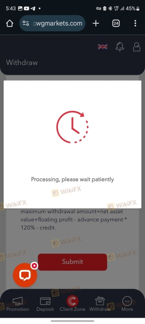 歷史上,曾有針對CWG Markets資金提款的投訴案例,部分用戶聲稱其提款請求被無故拒絕或延遲。此類問題可能嚴重影響交易者對經紀商保護其投資能力的信任。
