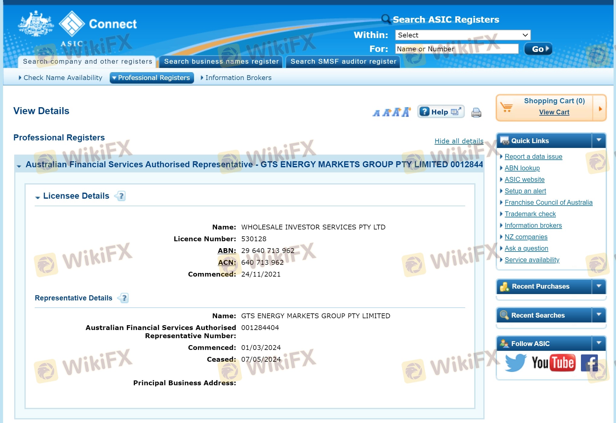 關於 GTSEnergyMarkets 外匯交易商的合法性,它賽普勒斯 CYSEC, 澳大利亞 ASIC, 澳大利亞 ASIC,在(也有關於安全的實勘調查)。