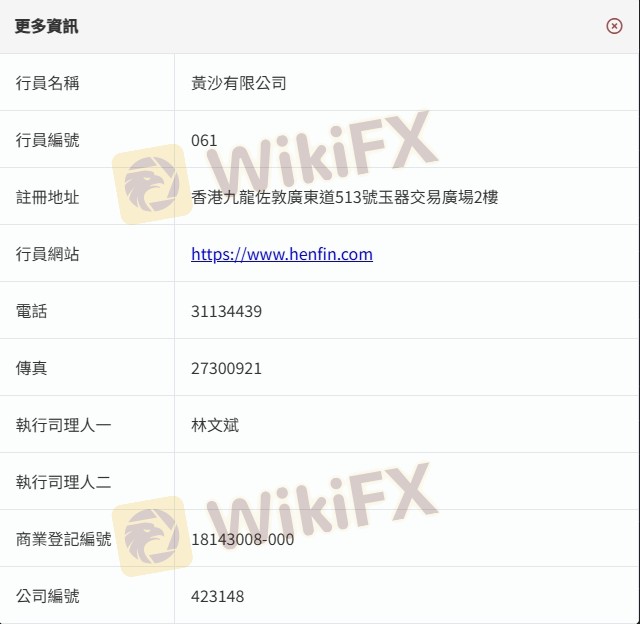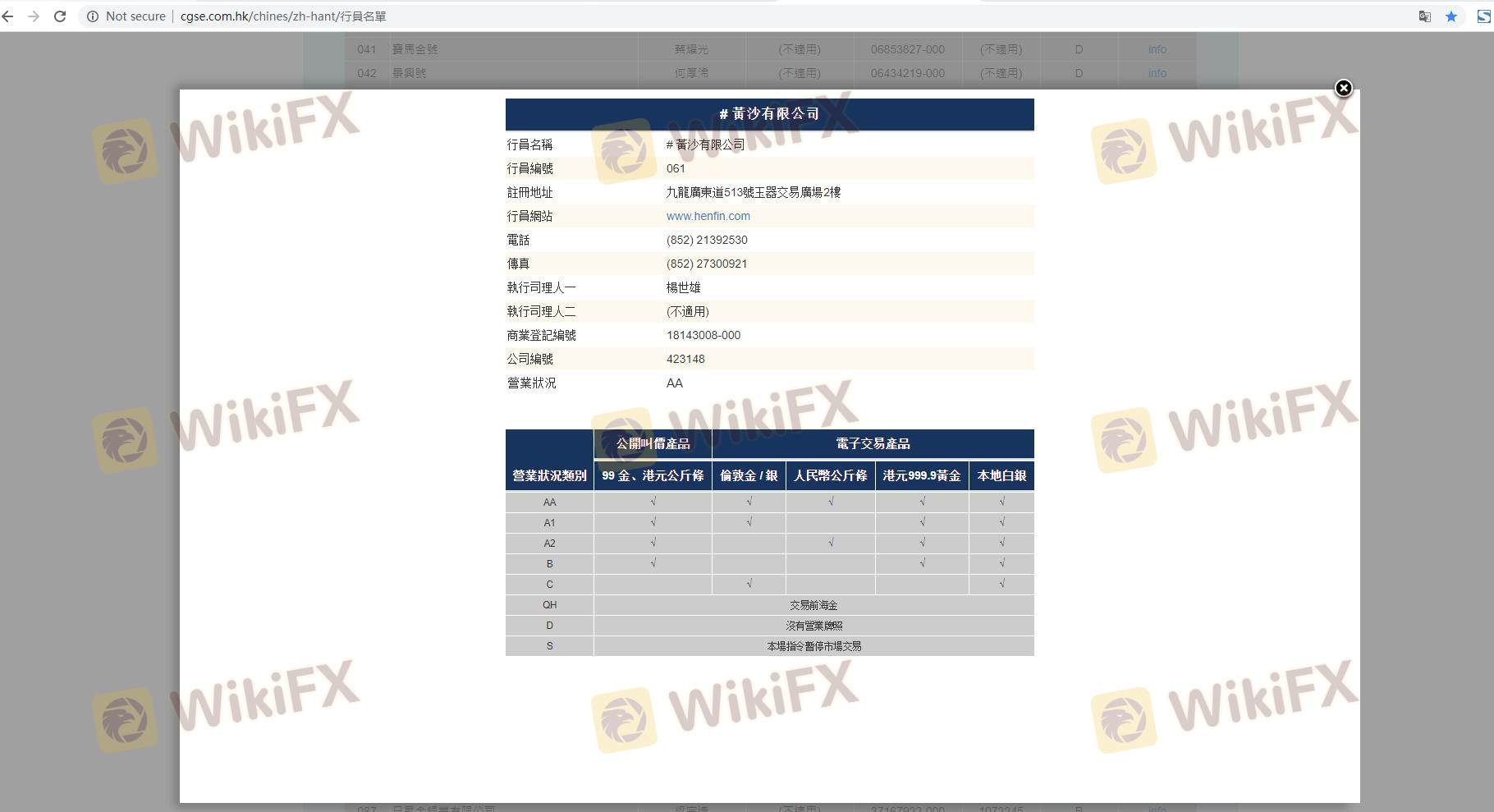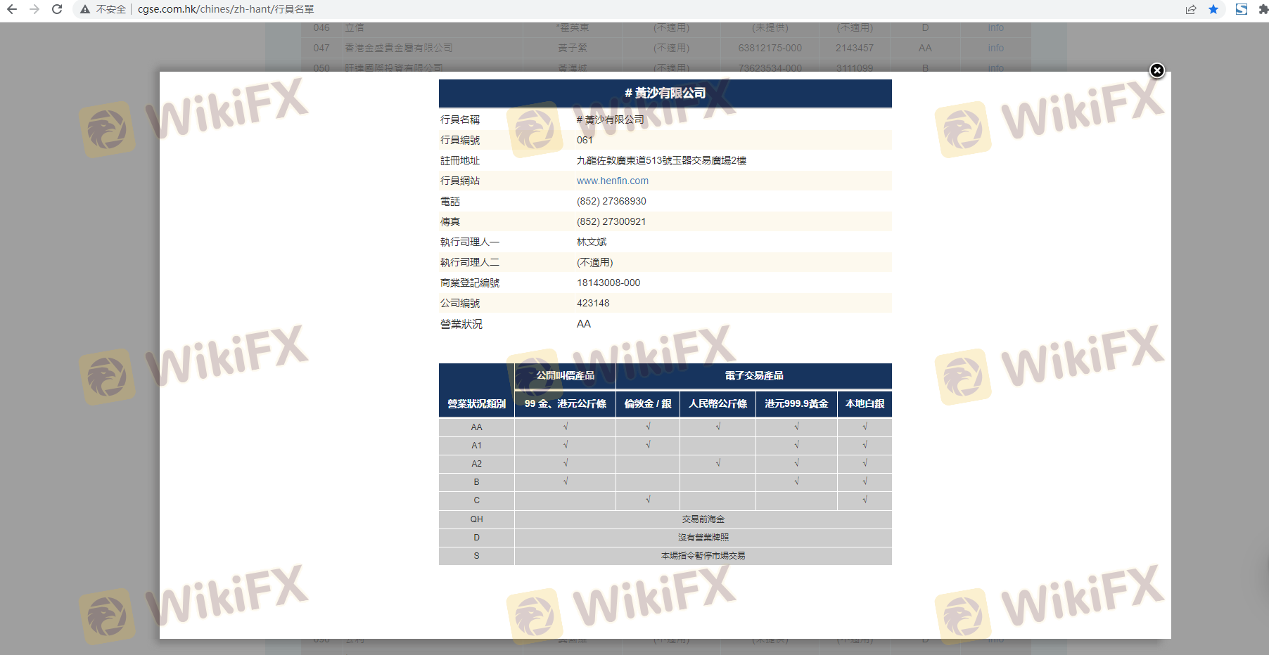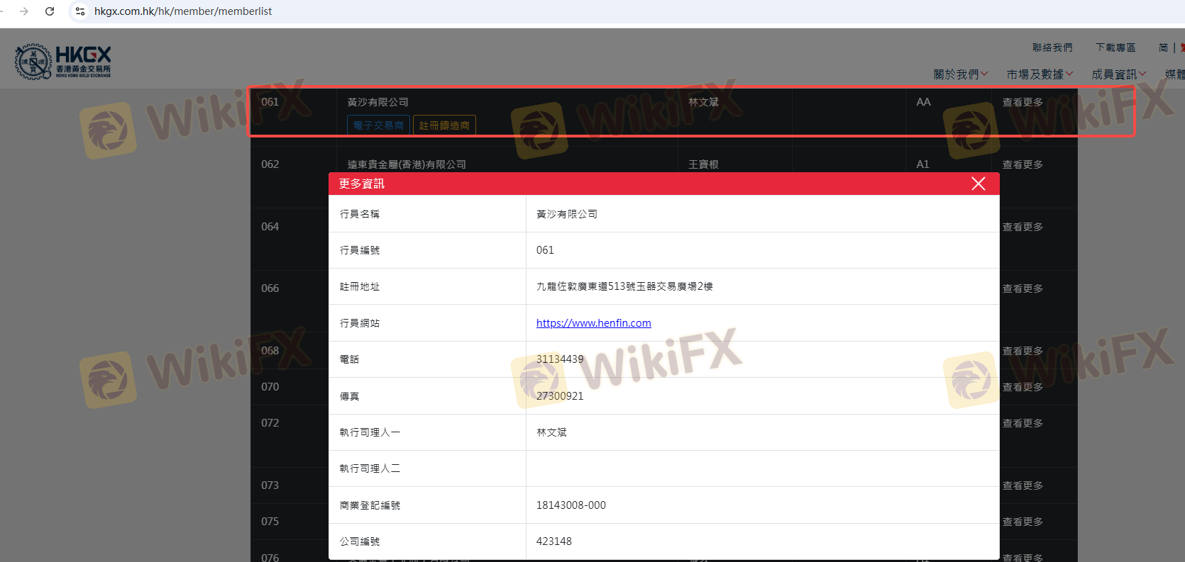關於 Henfin 外匯交易商的合法性,它香港 HKGX,在(也有關於安全的實勘調查)。