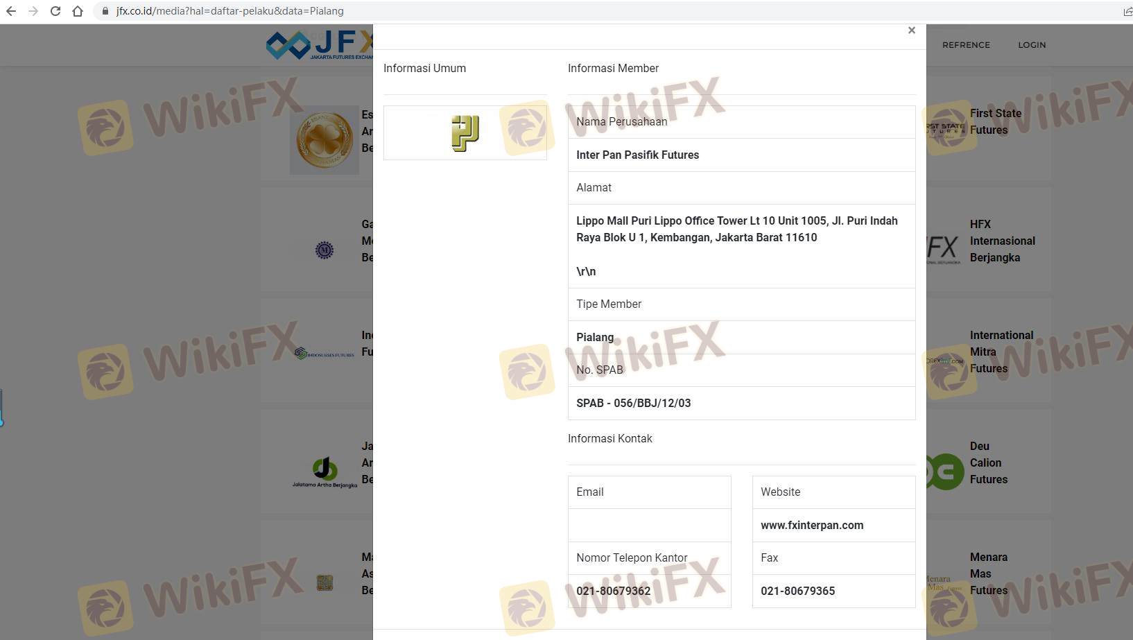 關於 Inter Pan 外匯交易商的合法性,它印尼 BAPPEBTI, 印尼 JFX, 印尼 ICDX,在(也有關於安全的實勘調查)。