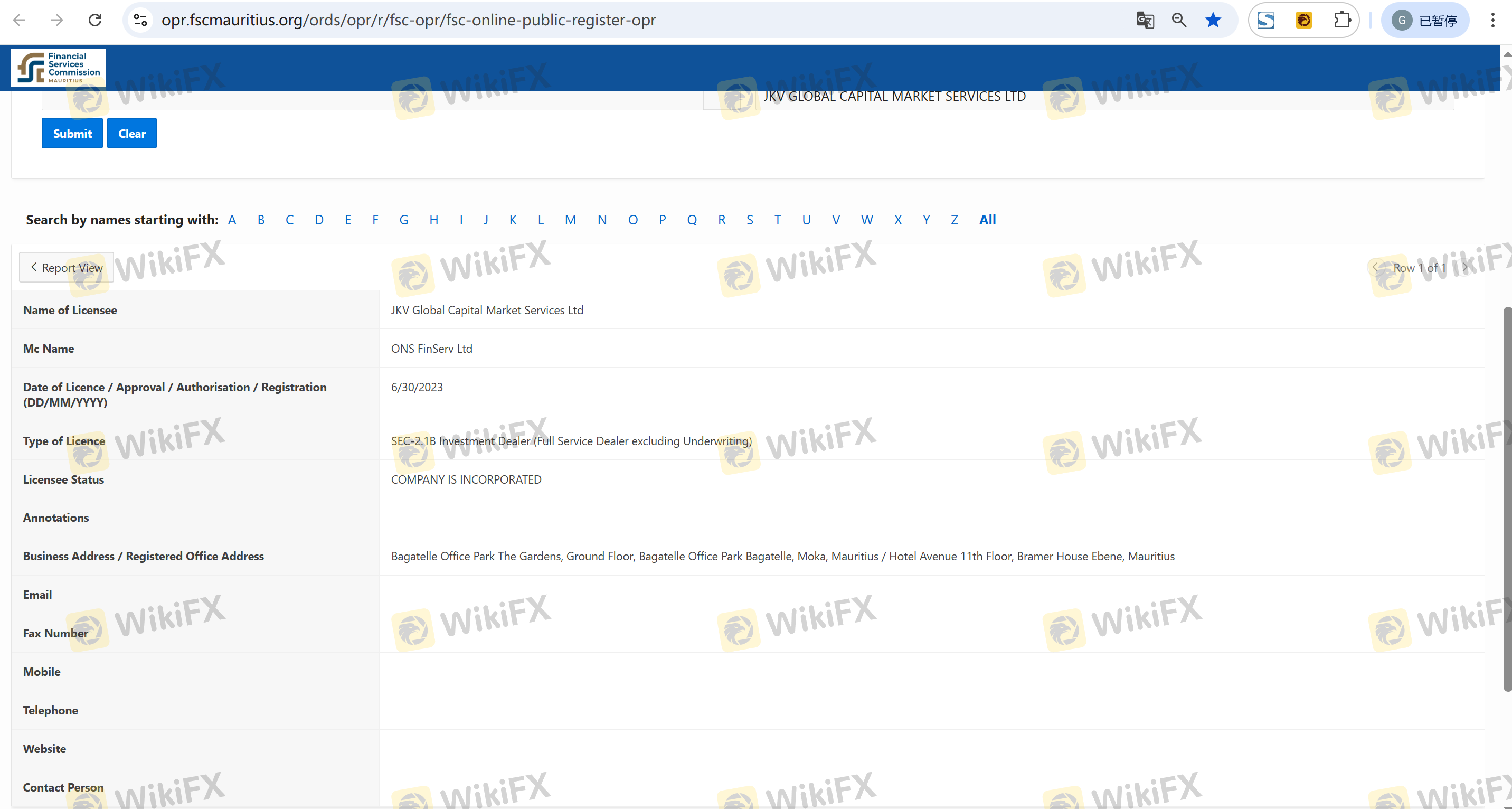 關於 JKV 外匯交易商的合法性,它模里西斯 FSC,在。