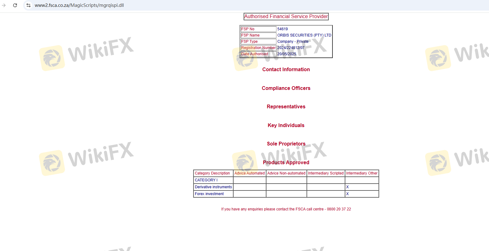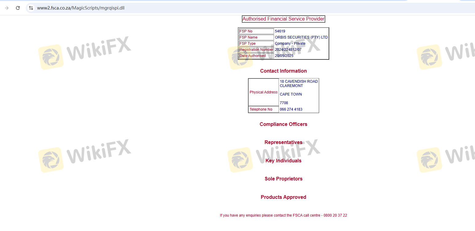 關於 Orbis securities 外匯交易商的合法性,它南非 FSCA,在。