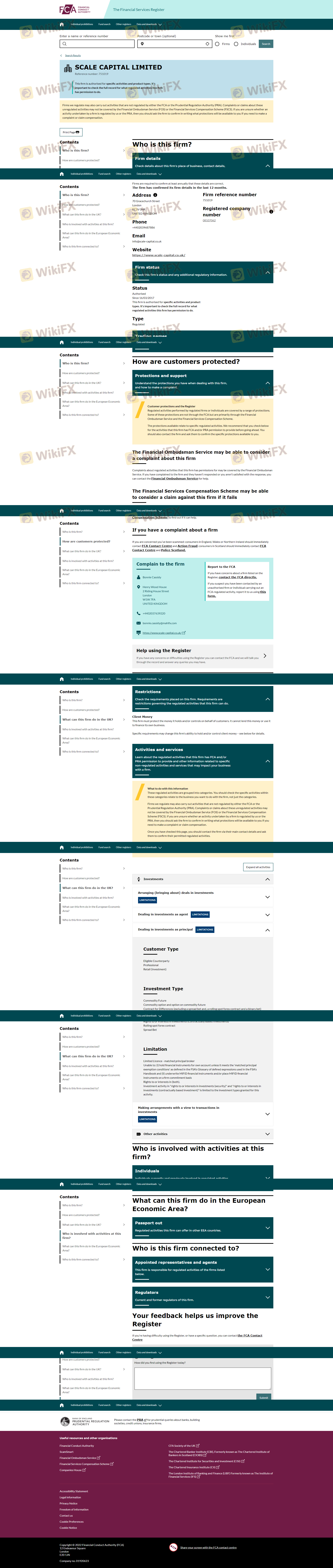 關於 Scale Capital 外匯交易商的合法性,它英國 FCA,在。