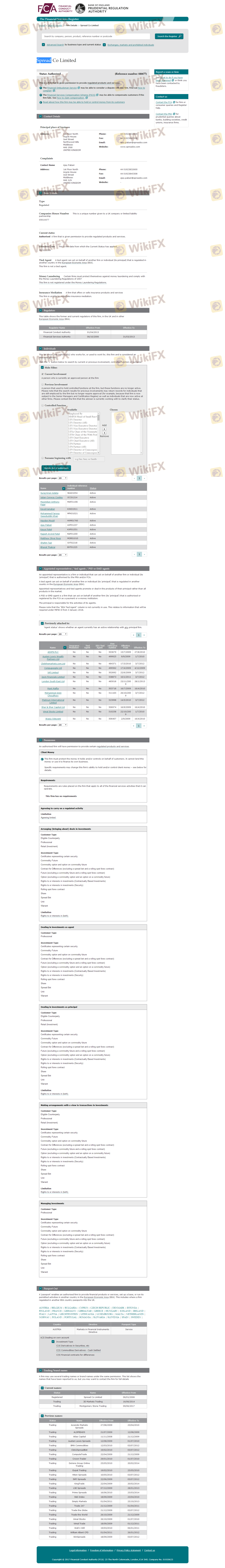 關於 SPREAD CO 外匯交易商的合法性,它英國 FCA,在(也有關於安全的實勘調查)。