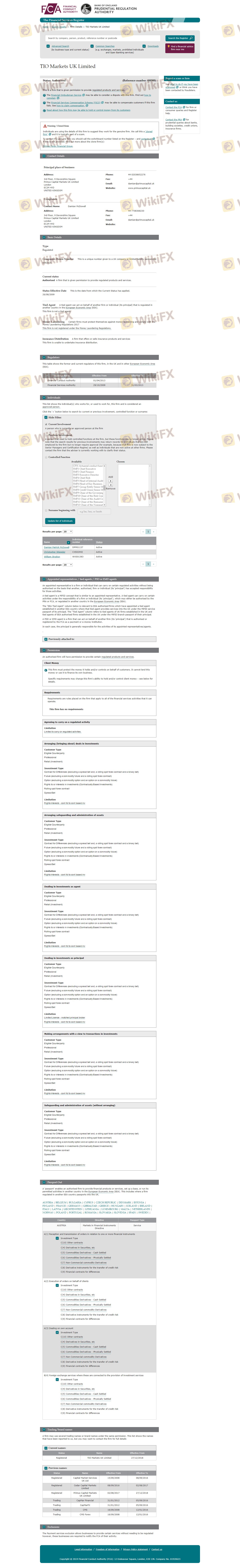 經紀商的監管是影響其可信度和可靠性的關鍵因素。TIO Markets 受 FCA 監管,這是一個備受推崇的金融監管機構,以其對金融機構的嚴格監管而聞名。監管確保經紀商遵守保護投資者並促進交易實踐透明化的嚴格標準。以下是 TIO Markets 監管資訊的摘要: