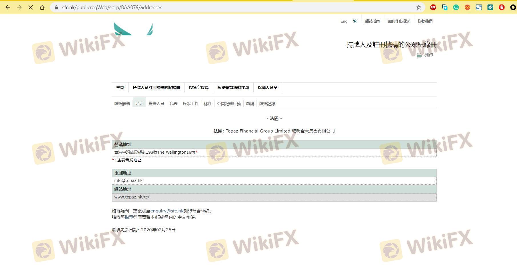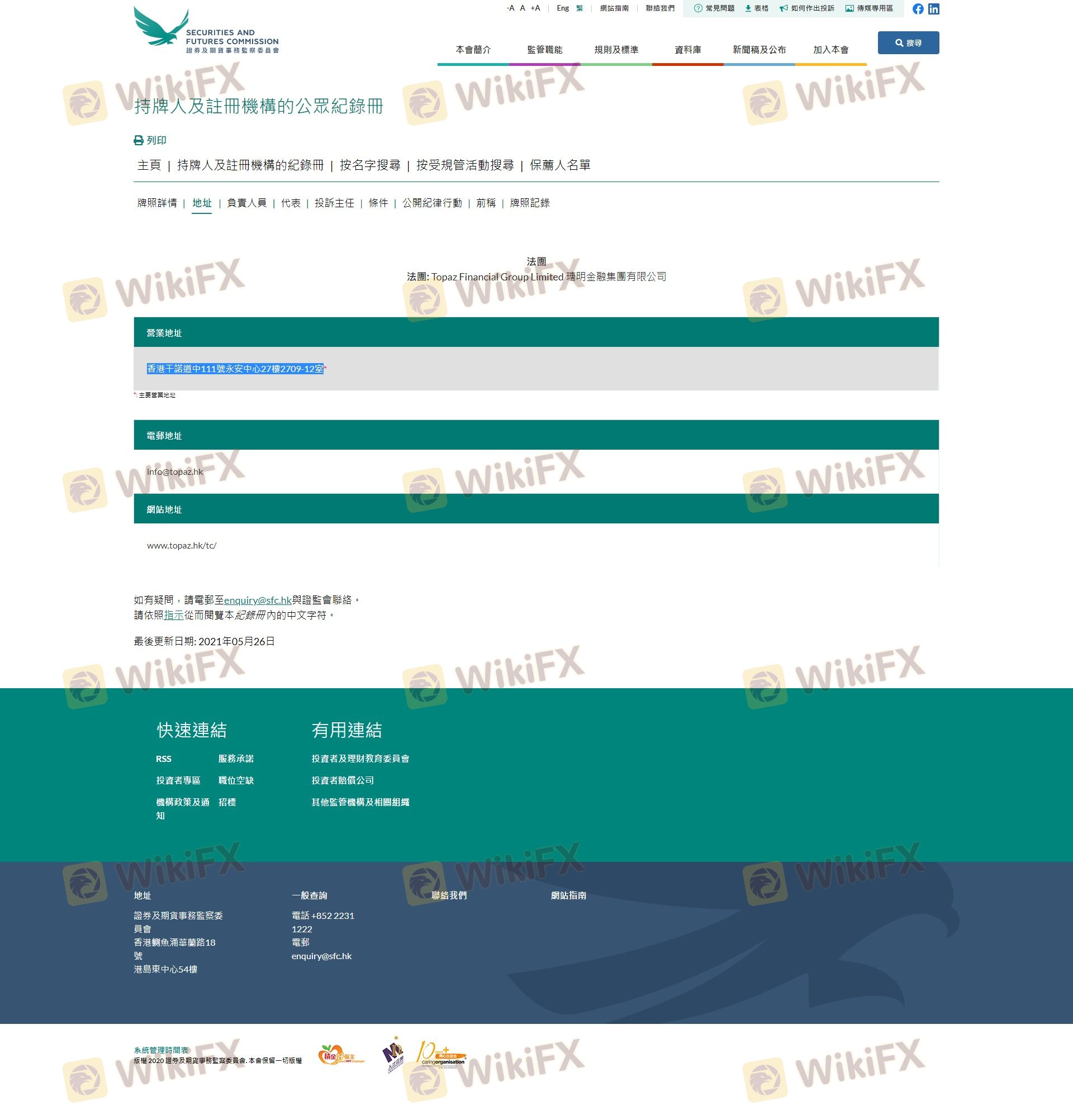關於 TOPAZ 外匯交易商的合法性,它香港 SFC,在(也有關於安全的實勘調查)。