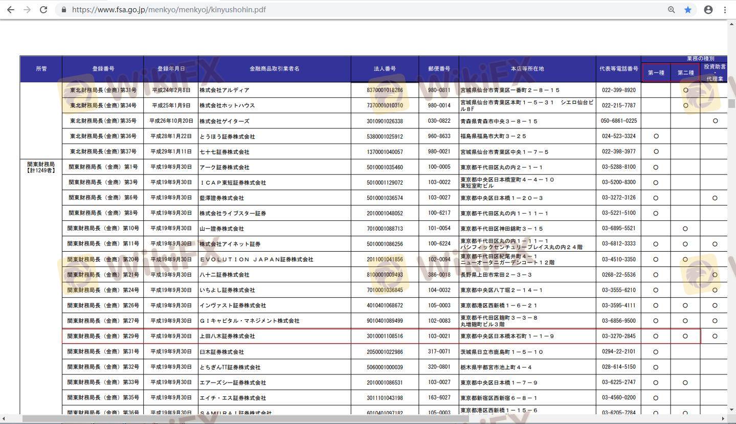 關於 UYS 外匯交易商的合法性,它日本 FSA,在(也有關於安全的實勘調查)。
