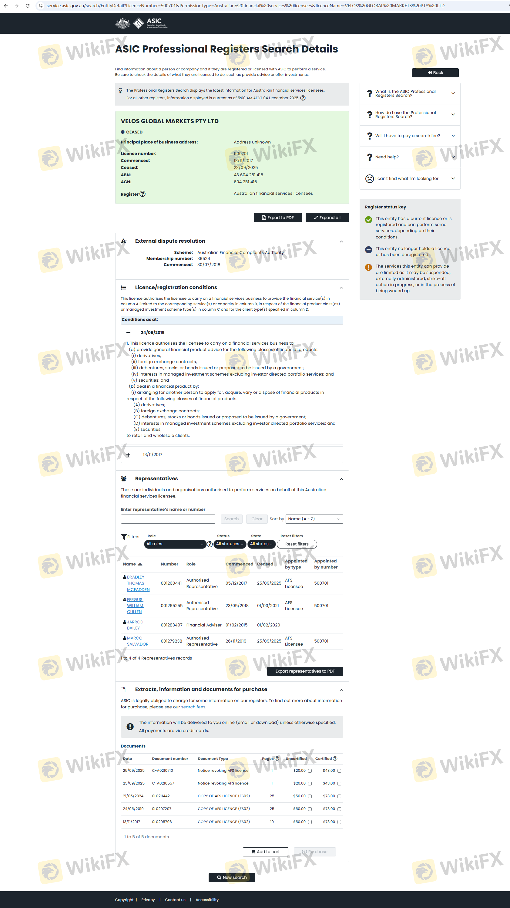 關於 Velos 外匯交易商的合法性,它澳大利亞 ASIC,在。