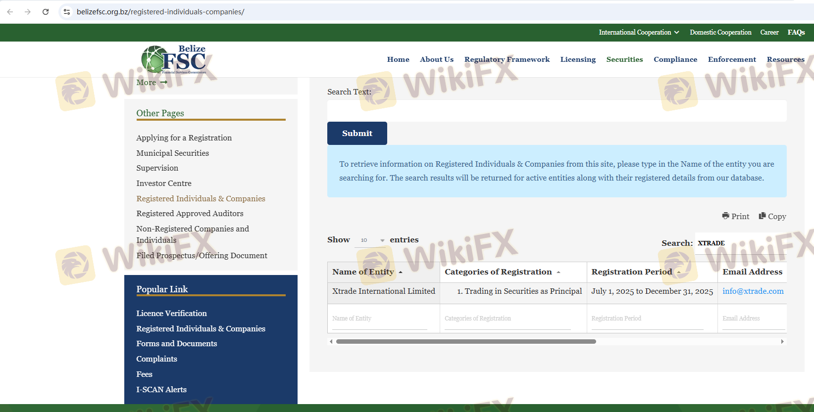 關於 XTRADE 外匯交易商的合法性,它澳大利亞 ASIC, 伯利茲 FSC, 賽普勒斯 CYSEC, 南非 FSCA,在(也有關於安全的實勘調查)。